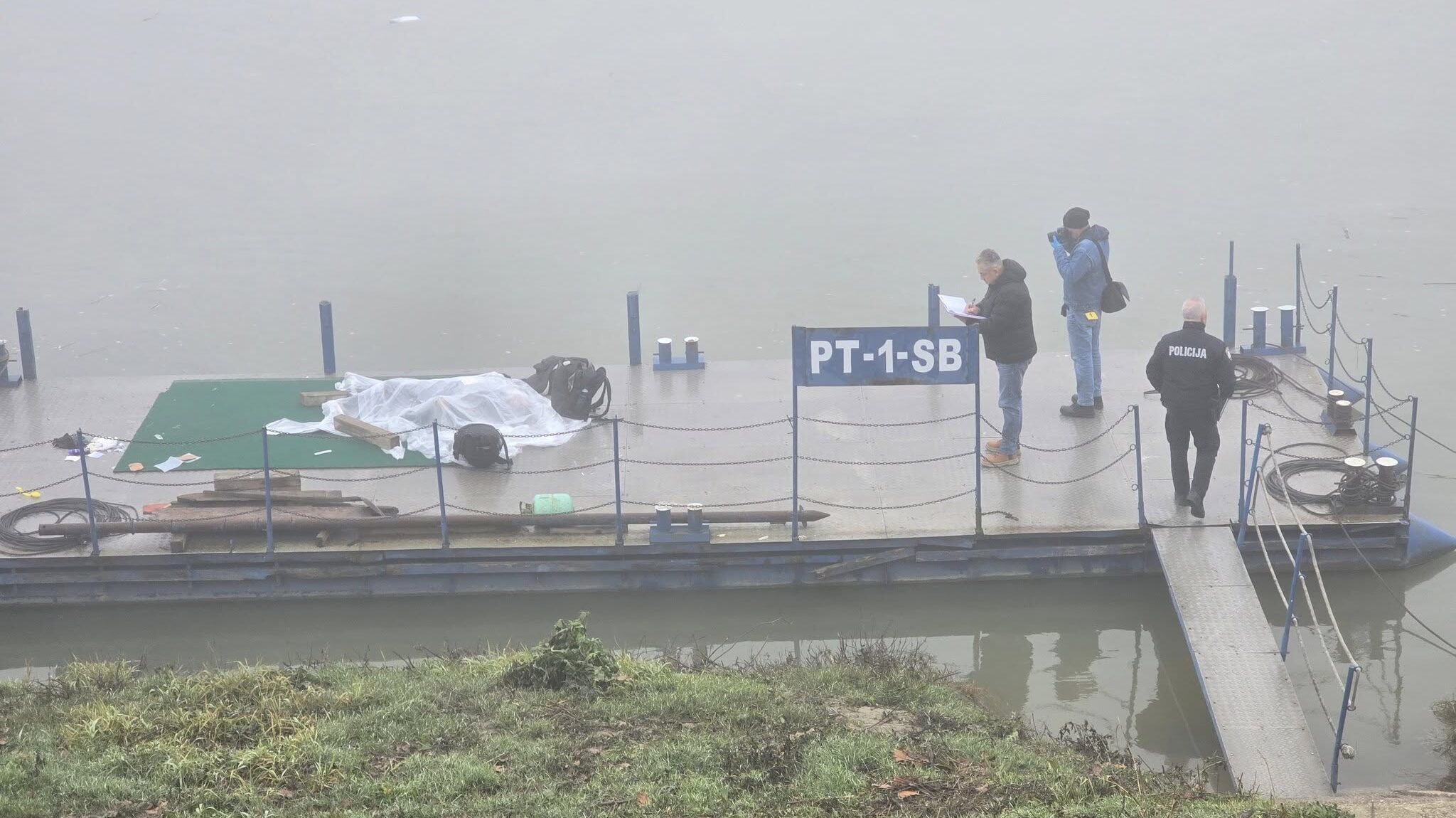 Police conduct a crime scene investigation on the Sava riverbank. Photo: Srdjan Hasic Vudjan/Radio Brod.