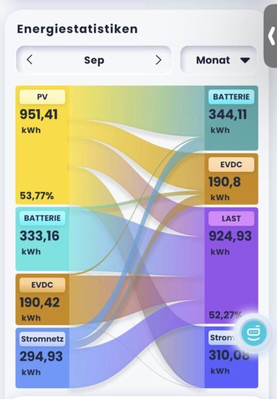 Sankey chart diagram of energy from Oliver Hille“You can see how Oliver charged 190 kWh into the car and discharged it back to the house. And it’s a big number,” says Sven Albersmeier-Braun, VP Sales Central Europe for Sigenergy. Albersmeier-Braun introduced both the SigenStor system and the EV-DC charging solution to Hille, and has seen first-hand how these technologies are benefiting not only Hille’s household but also his customers in southern Germany.