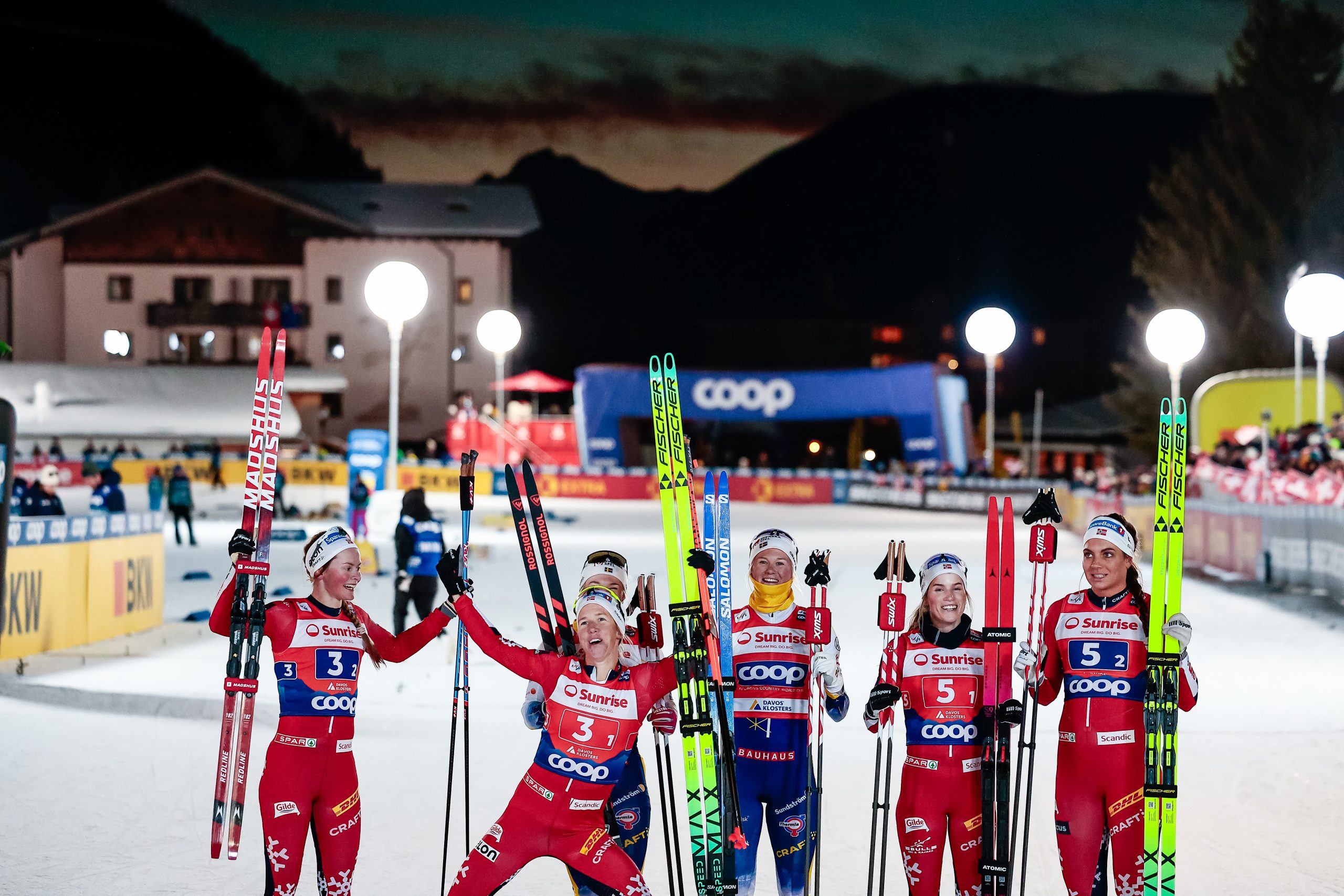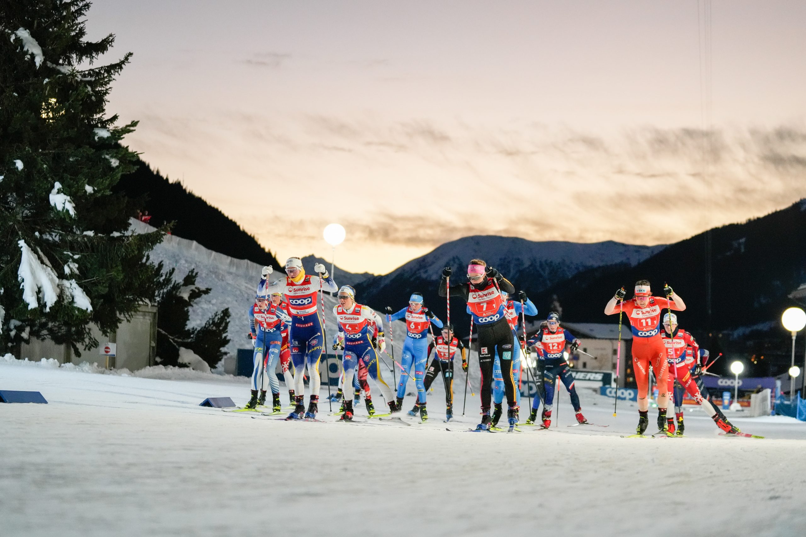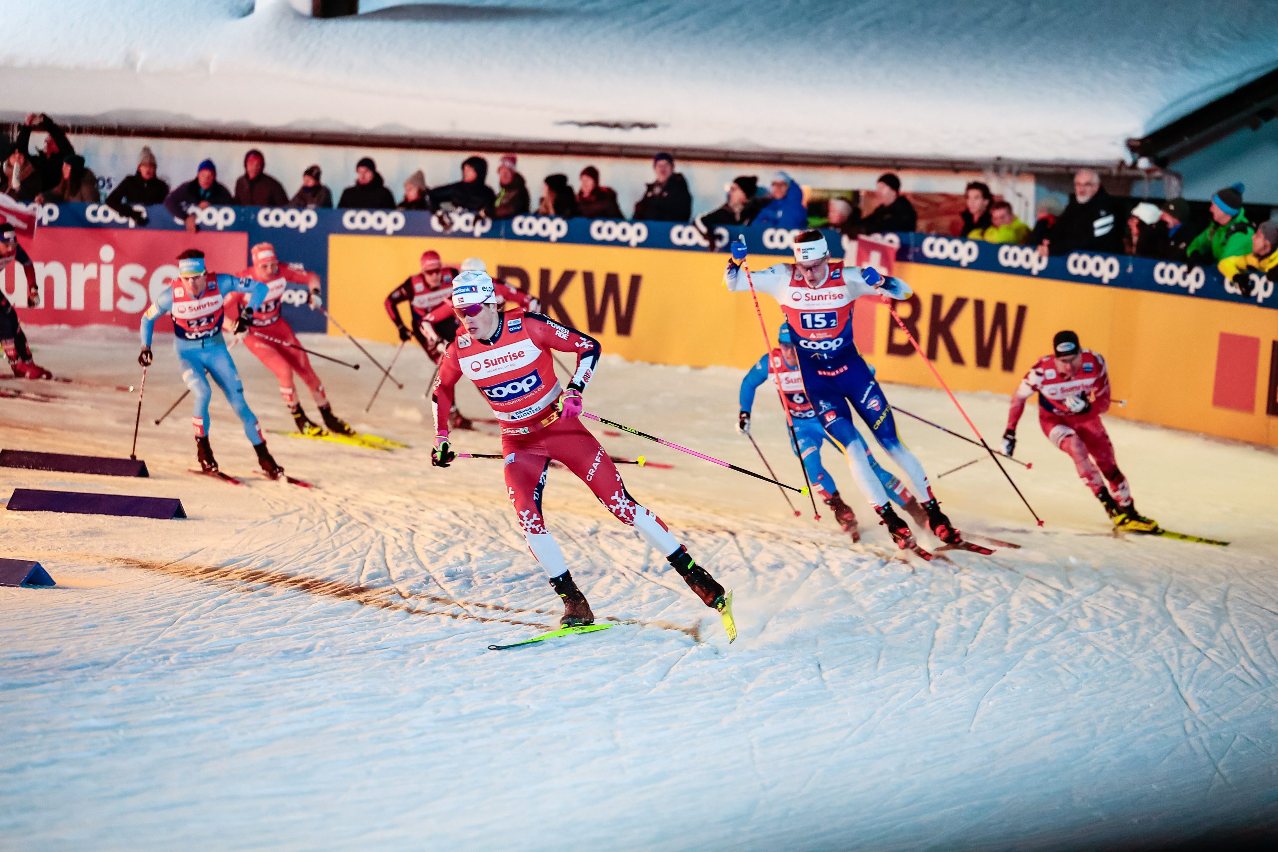 “I’ll tell you; I never get no respect.” That was the lament of the immensely popular comedian Rodney Dangerfield, the loveable schlub who became an American icon by continually reminding everyone how unloved he was, while he simultaneously went on to become a huge success. The FIS (International Ski Federation) Team Sprint race format is kind of the Rodney Dangerfield of the ski world. Mention it to the average ski fan and they usually get about as excited as hearing about soybean futures—unless of course your team is winning a medal. Some of this is no doubt due to the complex qualifying and race structure. But if you take a look at when international cross-country skiing competitions occur, you would think that the Team Sprint is the belle of the ball. It’s been in every winter Olympics since 2006 and every World Championship since 2005. But during the regular season, it’s the first race many skiers are likely to opt out of and today was no exception. In the high altitude of Davos, Switzerland, it was the time for the Team Sprint to get its moment in the regular season spotlight, as the men and women competed for team honors in the Freestyle technique in this cross-country hybrid event.
