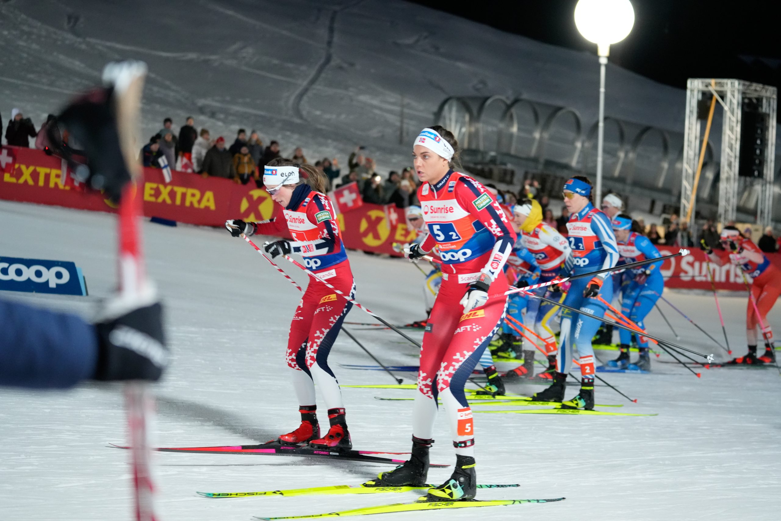 Astrid Oeyre Slind (NOR), Mathilde Myhrvold (NOR), (l-r) – FIS world cup cross-country, team sprint, Davos (SUI). (Photo: NordicFocus)