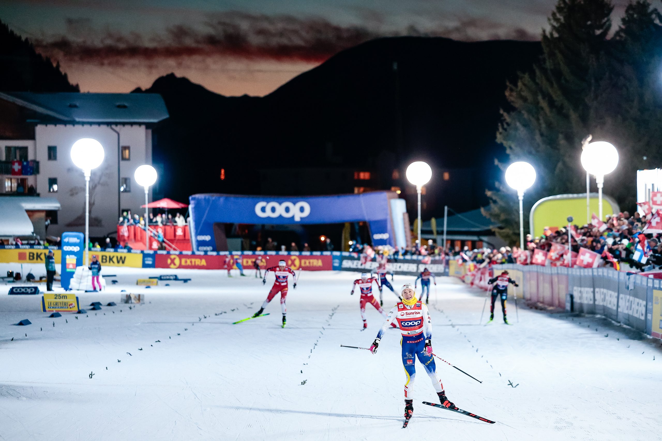 On the men’s side, the only question going into the race was how many of its stars, if any, would Norway rest. Given their early season dominance, they were clearly favored to win. In the qualifying rounds when Johannes Klaebo and Erik Valnes were on the start list for Norway I, and Harald Oestberg Amundsen and Oskar Vike, were manning Norway II, it looked a little bit like mission impossible for the rest of the men.