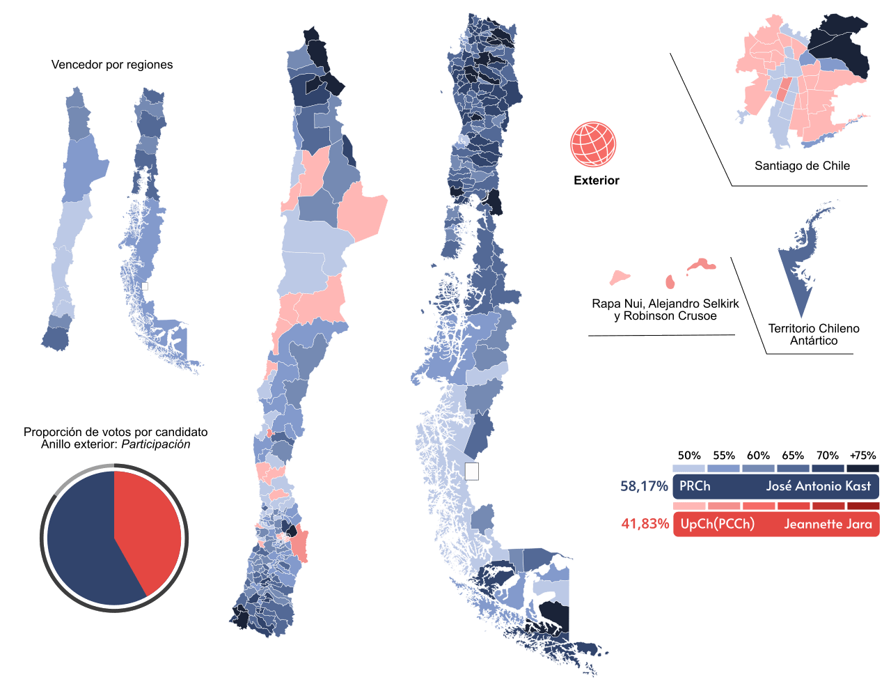 Kast is the leader of an alliance of 3 parties; his own right-wing nationalist Republican Party, a pro-Milei/Pinochet Libertarian Party, and the evangelical/Pentecostal Christian Social Party. Kast was also endorsed by the main centre-right alliance which Kast left to start his own in 2019.