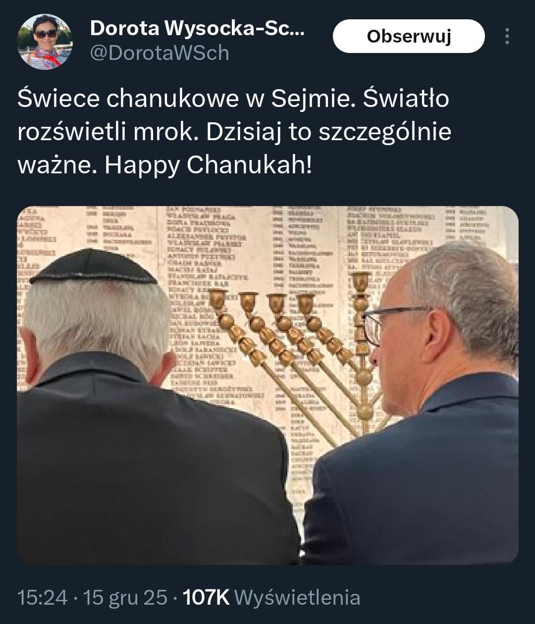Śmieszne jest porównywanie chanuki raz w roku do krzyży w urzędach, milionów z budżetu dla kościoła, lekcji religii itp.