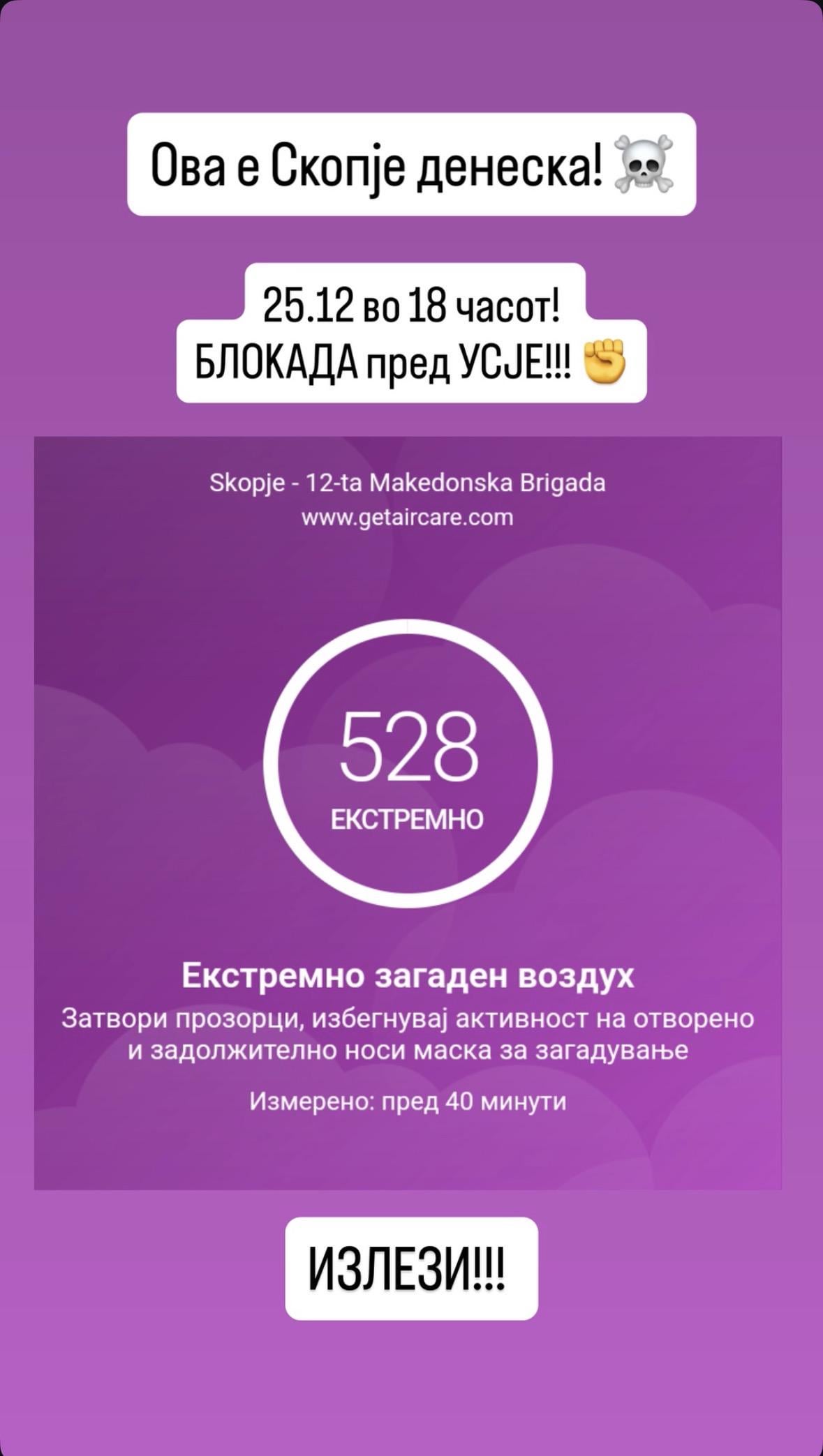 “Stop for Usje” is organizing a blockade to close one of the biggest polluters in Skopje. That almost everyone here is complaining about how bad everything is, go out to the blockade!