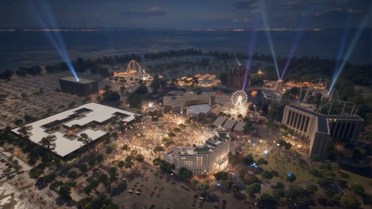 The space will also include a 22,500-seat arena for concerts and esports competitions, three hotels totaling 1,200 rooms, a 12-acre water park, a luxury fashion outlet, a professional racing circuit, and a technology hub designed to host more than 1,000 workstations for startups in gaming and digital creative industries.