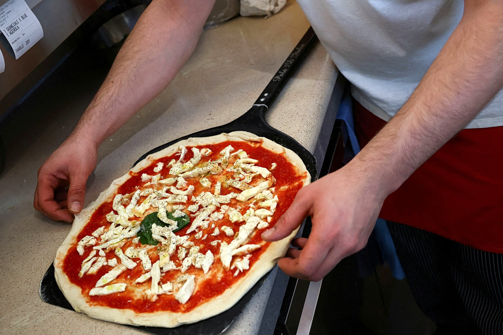 A man in Naples, Italy, prepares a pizza ahead of UNESCO’s decision to recognize the nation’s cuisine as Intangible Cultural Heritage of Humanity. December 3, 2025. Photo: Reuters/Ciro De Luca