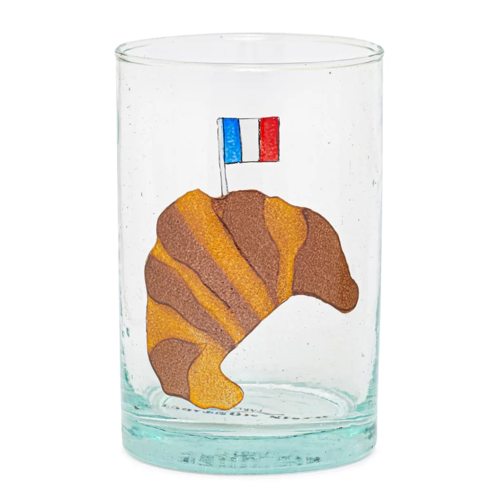 Few designers capture the whimsy of Paris quite like Marin Montagut, the artist and illustrator known for his joyful, hand-painted creations. His personalized glassware — inspired by vintage French bistros — transforms something as simple as a drinking glass into a love letter to the City of Light. Each piece is mouth-blown and painted by hand in Montagut’s Paris atelier, adorned with colorful Parisian street names or custom lettering. Perfect for sipping lemonade, storing brushes, or brightening up your breakfast table, these poetic glasses bring a little Parisian charm into everyday life. https://www.marinmontagut.com/en/products/verre-peint-a-la-main-croissant-francais