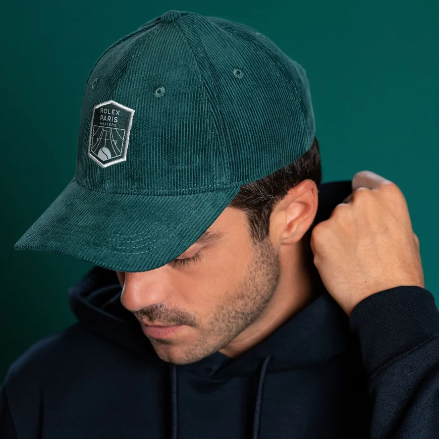 Blending sport and sophistication, this velvet cap from the Rolex x Roland-Garros collection is a subtle nod to French tennis heritage. The deep green shade and refined finish give it a timeless, understated elegance. Ideal for tennis fans or anyone who appreciates discreet luxury in their everyday wardrobe. https://store.rolandgarros.com/rolex-paris-masters-unisex-velvet-cap-green.html