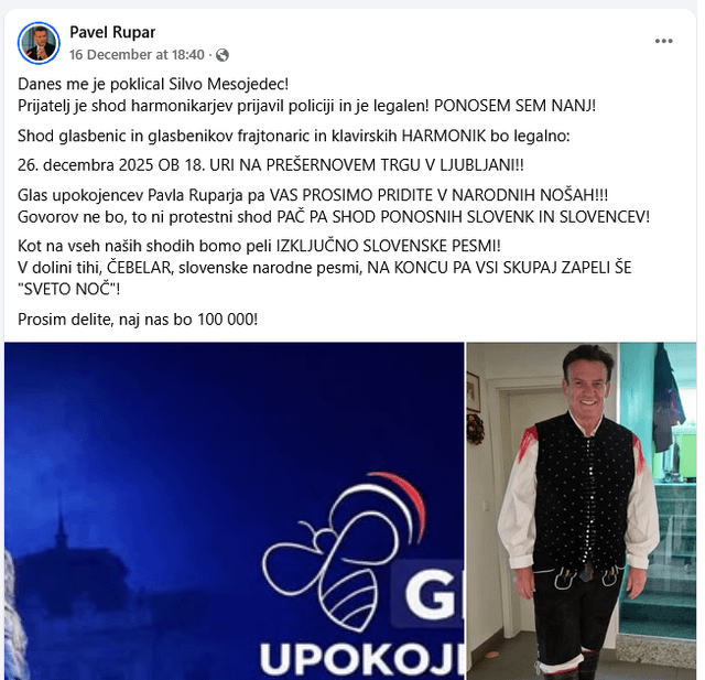 The concert of accordion players is registered for 100 people, Pavel Rupar expects 100 thousand Slovenians https://www.reddit.com/gallery/1ppi6y2 Posted by luka274