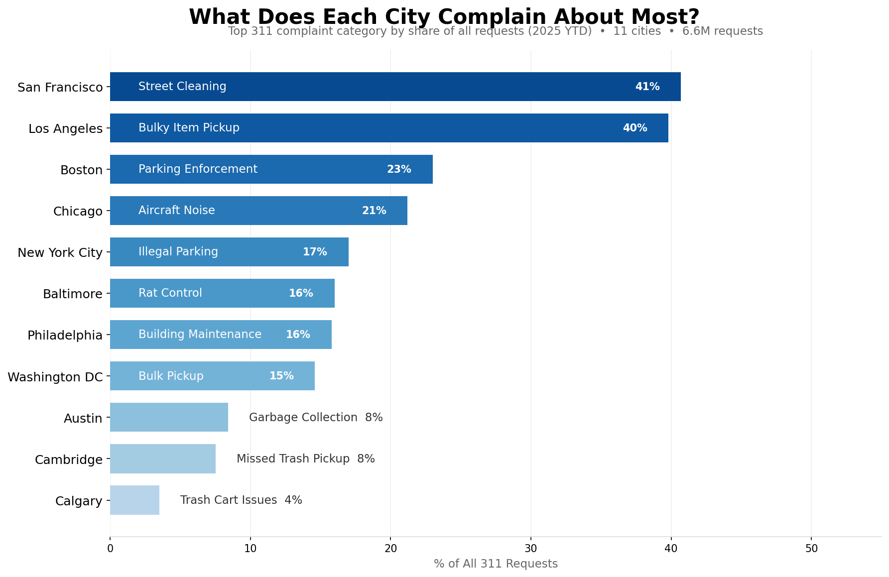 I also made [311wrapped.com](http://311wrapped.com) to look at each city in detail (but i know dots on a map are NOT a data visualization