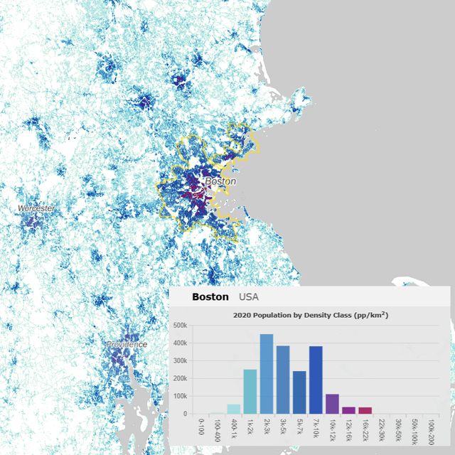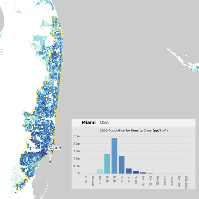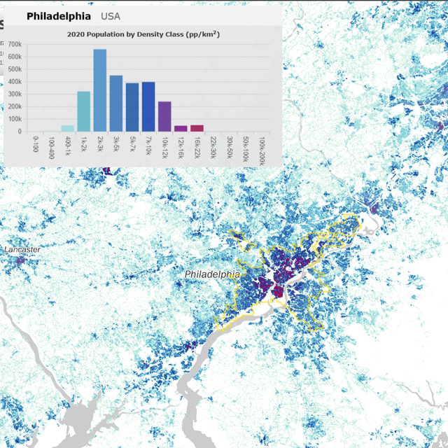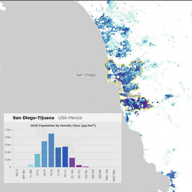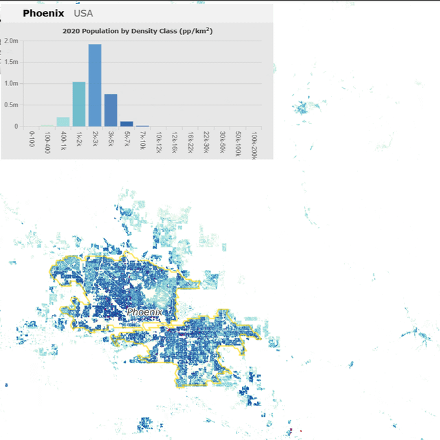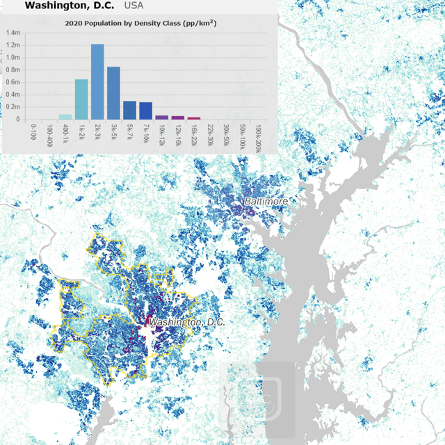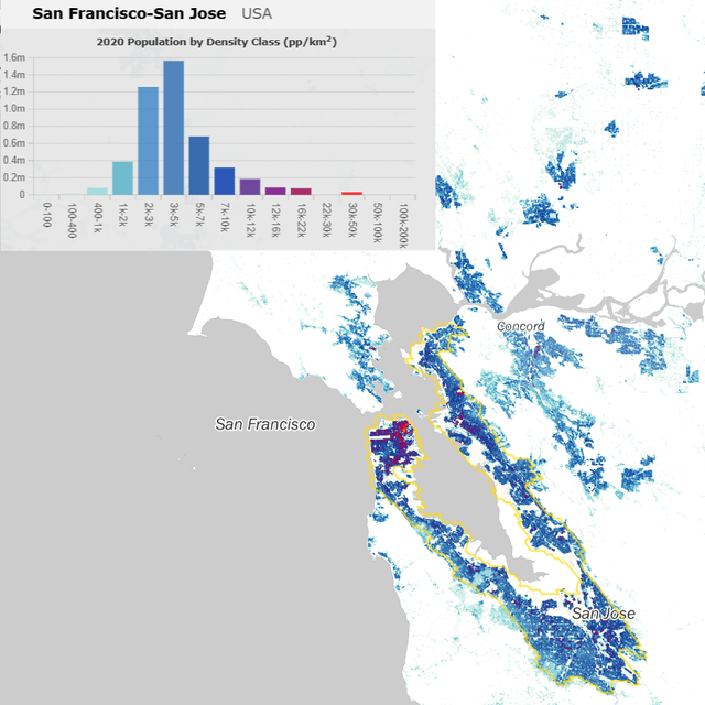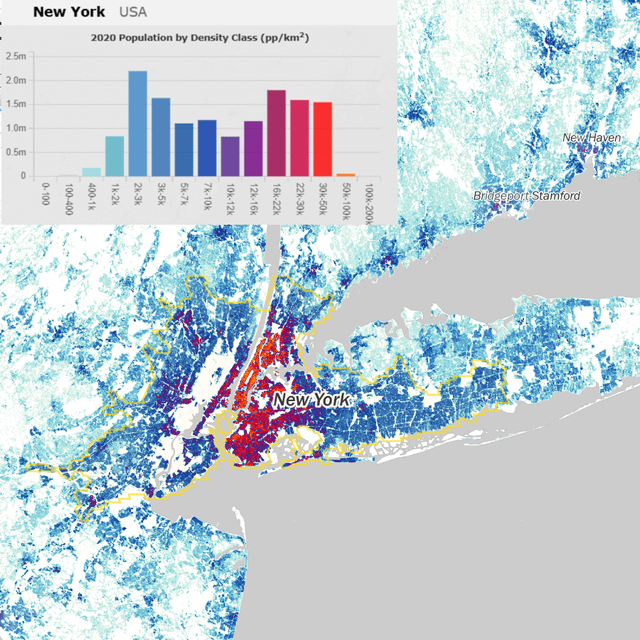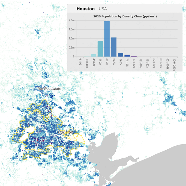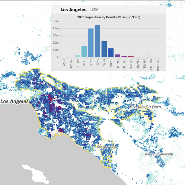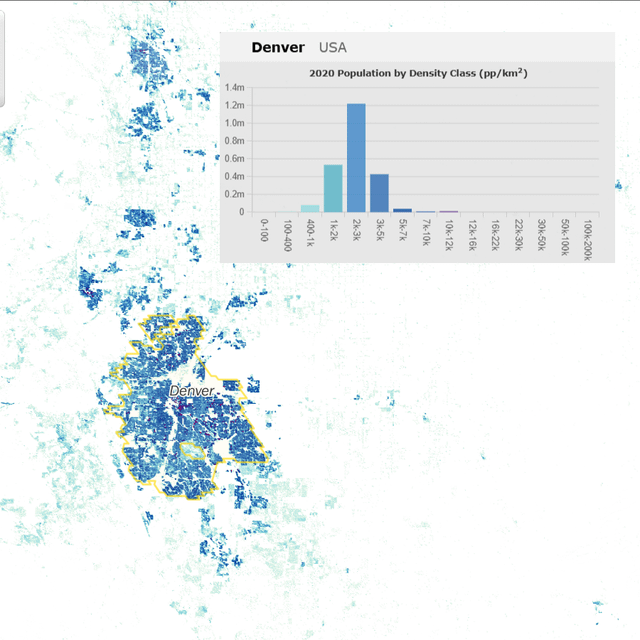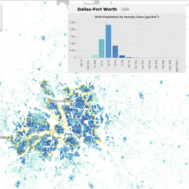 Here, the 16 of the largest US urban areas with populations > 2 million are ranked based on the UN/EU threshold, with data collected from UN/EU GHSL data by Duncan Smith of Bartlett Centre for Advanced Spatial Analysis at UCL, and organized and designed this map viewer based on the data:Â [https://luminocity3d.org/WorldPopDen/#3/20.00/10.00](https://luminocity3d.org/WorldPopDen/#3/20.00/10.00)