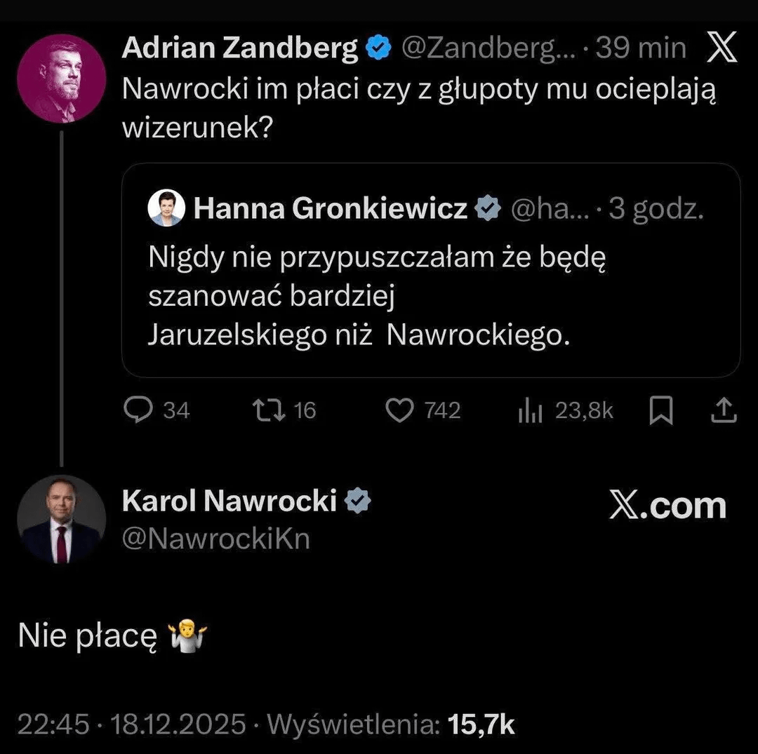 Dealiner on December 19, 2025 11:29 am Pomijając jego sensowność, niby w jaki sposób ten wpis ociepla wizerunek Nawrockiego?