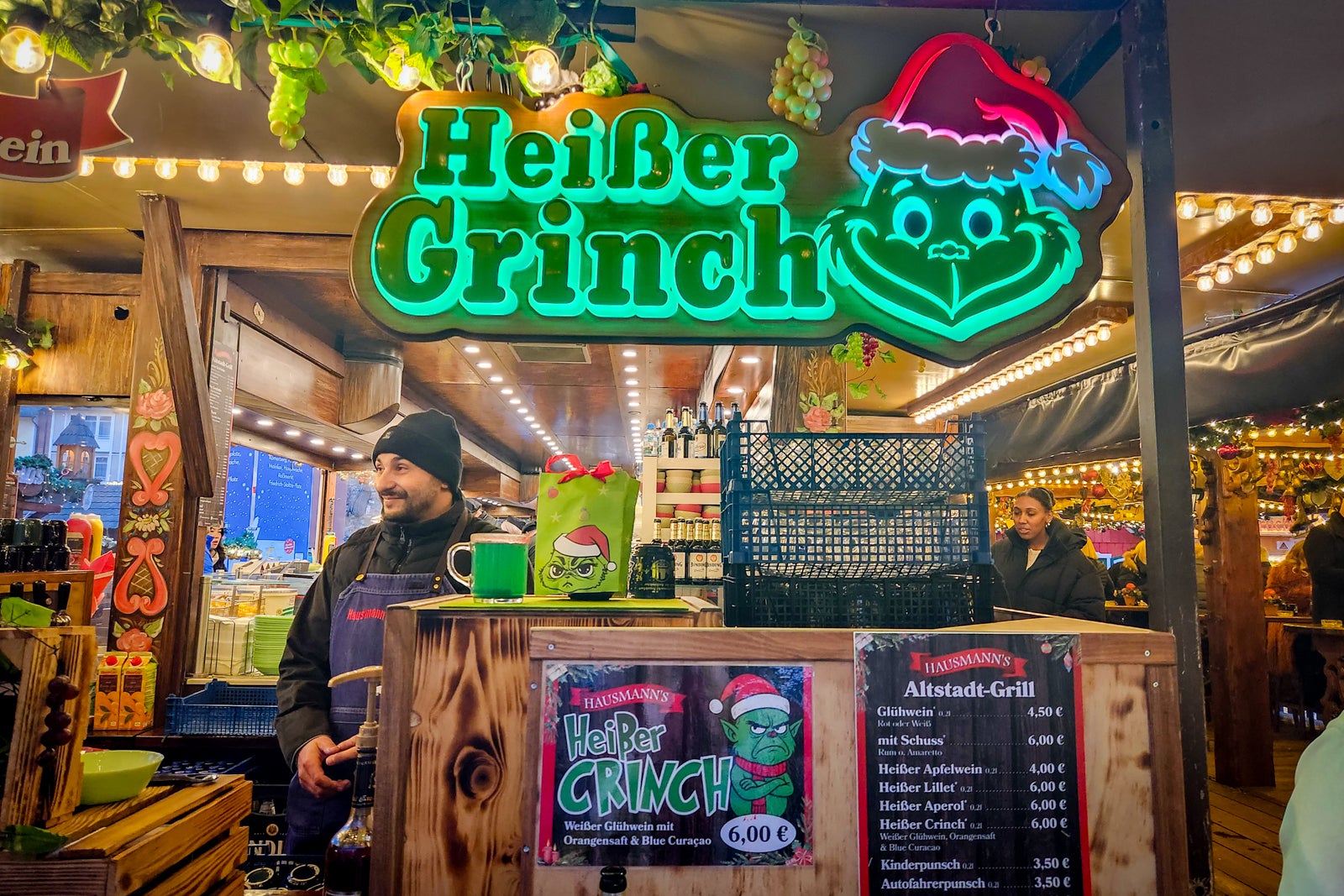 If you plan a stop in Frankfurt, be sure to do it on a weekend, when crowds at many other German Christmas markets could threaten to turn you into a Grinch. (Speaking of which, they have hot Grinch-themed drinks here, too.)