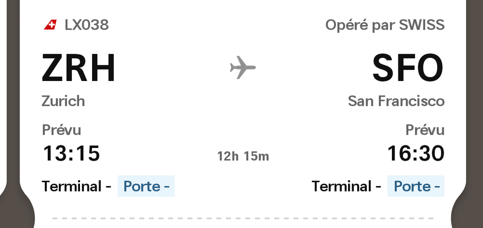 I booked a flight from Geneva to San Francisco with a connection in Zurich (GVA → ZRH → SFO). This itinerary was cheaper than booking just the ZRH → SFO leg and I’m living in GVA so it made sense.