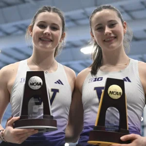 Hana (left) and Amanda Moll after winning NCAA national titles in March. Photo courtesy UW Athletics.