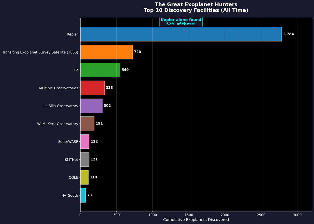 – Kepler's Legacy: The Kepler Space Telescope alone discovered 2,784 planets; 45.9% of all known exoplanets.
