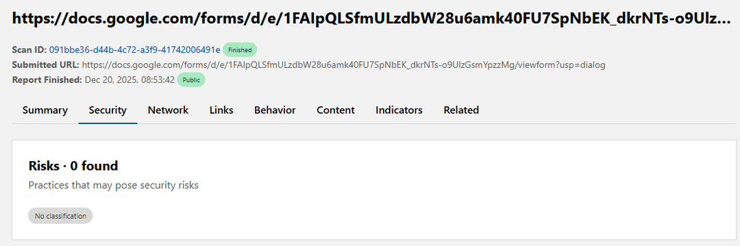 I understand if you think about security – the link leads to a Google Forms survey and, for the sake of convenience, I posted a screenshot with a check of the link made in nupatka. There are a whole bunch of link-safe tools with which to check if the link is safe.