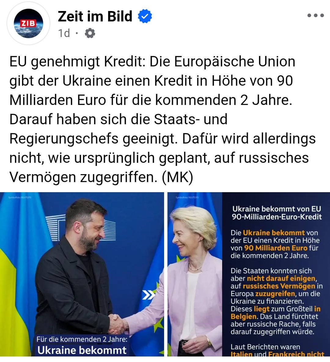 9. Im [orf.at Artikel](https://orf.at/stories/3414885/) dazu steht übrigens „Die EU behält sich ausdrücklich vor: Sollte Russland keine Entschädigung leisten, werden wir – in völliger Übereinstimmung mit dem Völkerrecht – die russischen Vermögenswerte für die Rückzahlung heranziehen“.