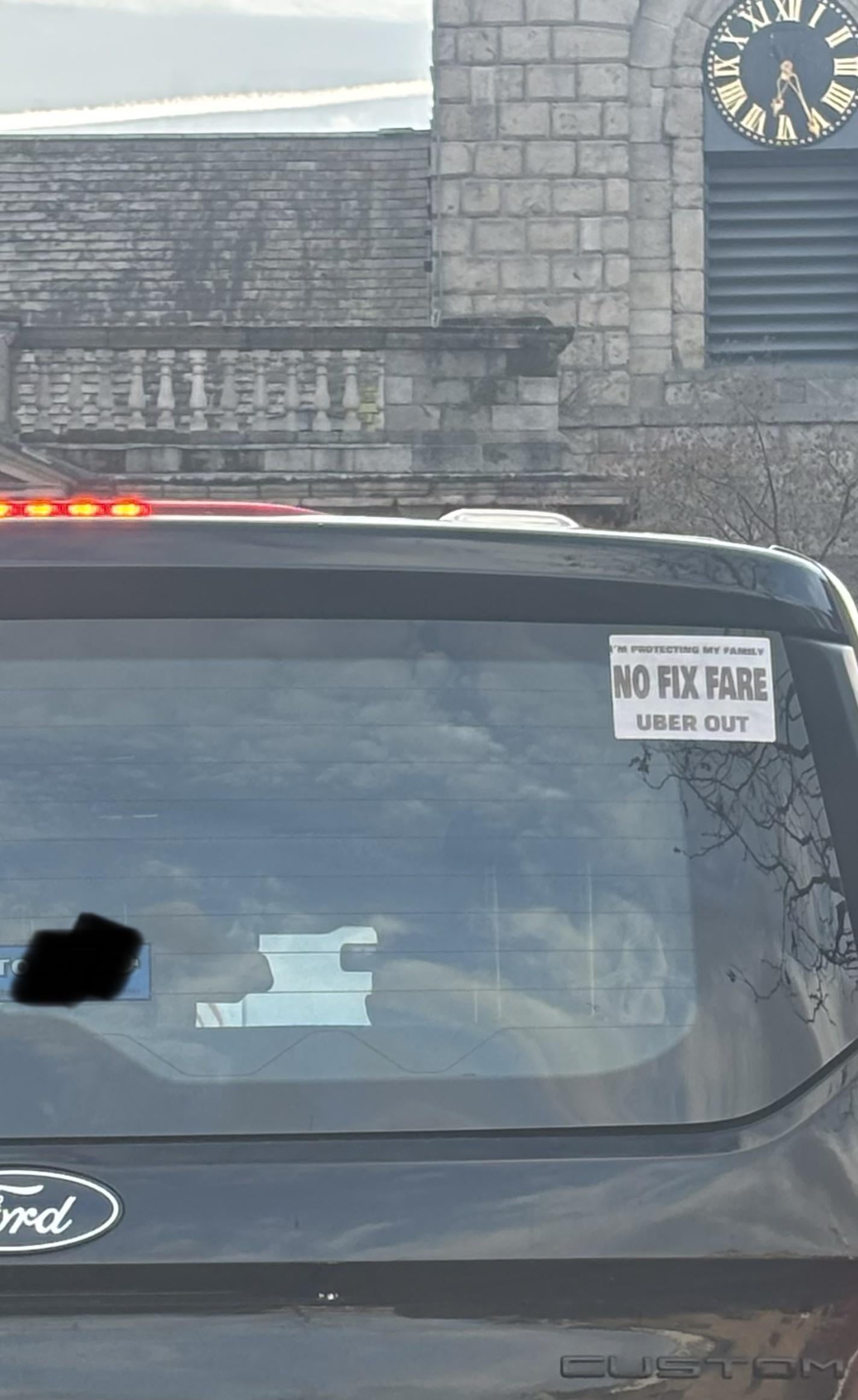 Got a taxi the other day, Fixed fare on Uber, Driver showed up with a similar sticker and the windshield