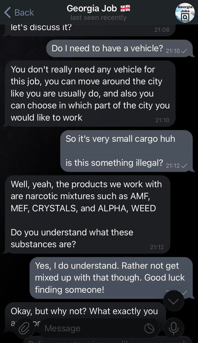 I would have assumed that this was some kind of lame entrapment where law enforcement is attempting to get you to agree to doing something illegal. Isn’t it odd that they would be so open about selling drugs?