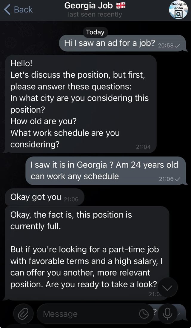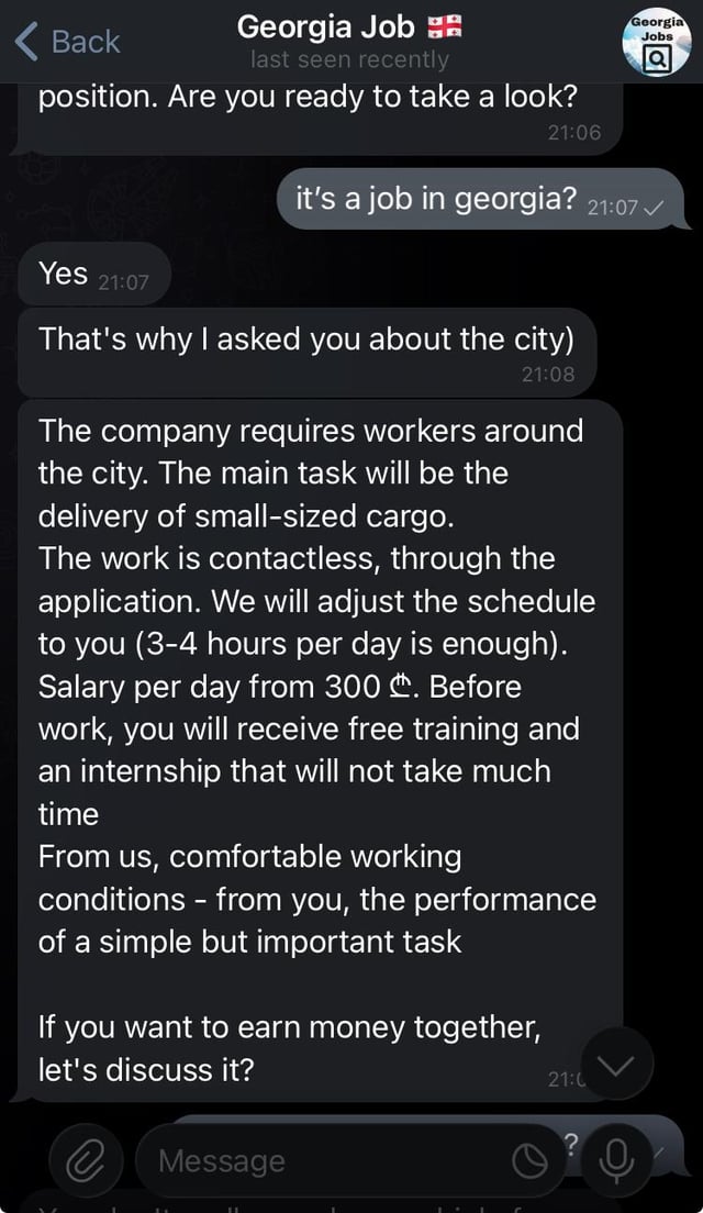Decided to respond to the ad this time and play along to see where it goes. I guess I shouldn’t have been surprised, it took less than 10 minutes to admit they are looking for drug mules. Be careful out there.