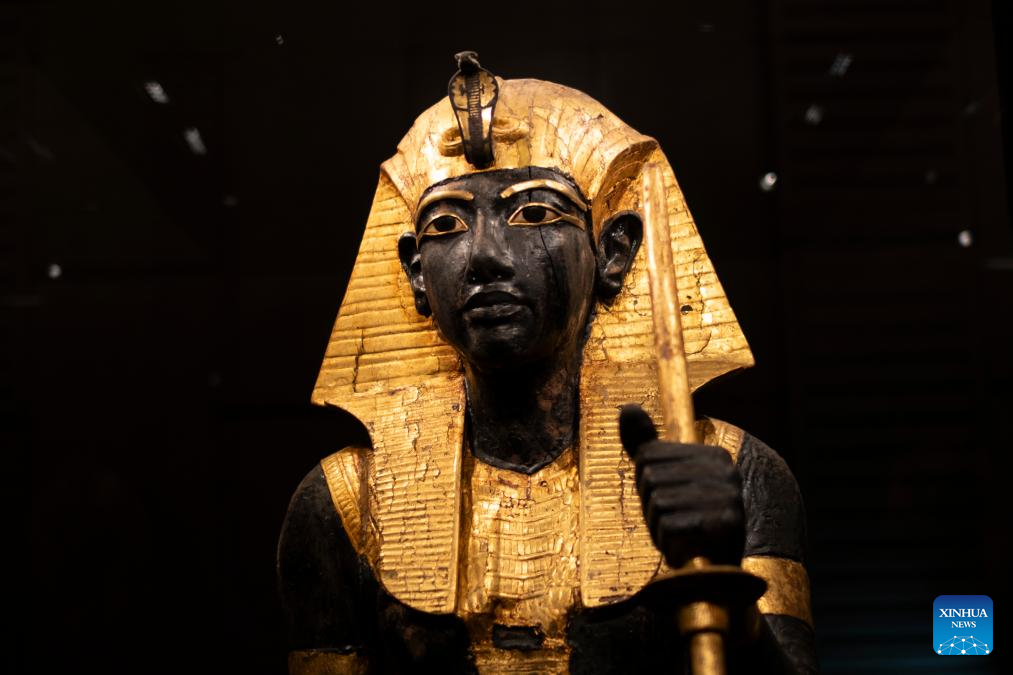 This photo taken on Dec. 20, 2025 shows the Guardian Statue with Nemes Headcloth at the King Tutankhamun exhibition hall of the Grand Egyptian Museum in Giza, Egypt. The Grand Egyptian Museum (GEM) opened its doors to the public on Nov. 4, establishing itself as one of the world’s largest displays of ancient relics, and a high-tech fort dedicated to heritage conservation.