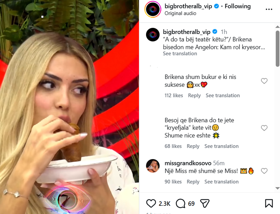 Followers have not spared compliments and positive comments: “You’ve started very nicely”, “I believe Brikena will be the headline this year”, “This is the best chick so far”, “Brikena is a character”, etc.