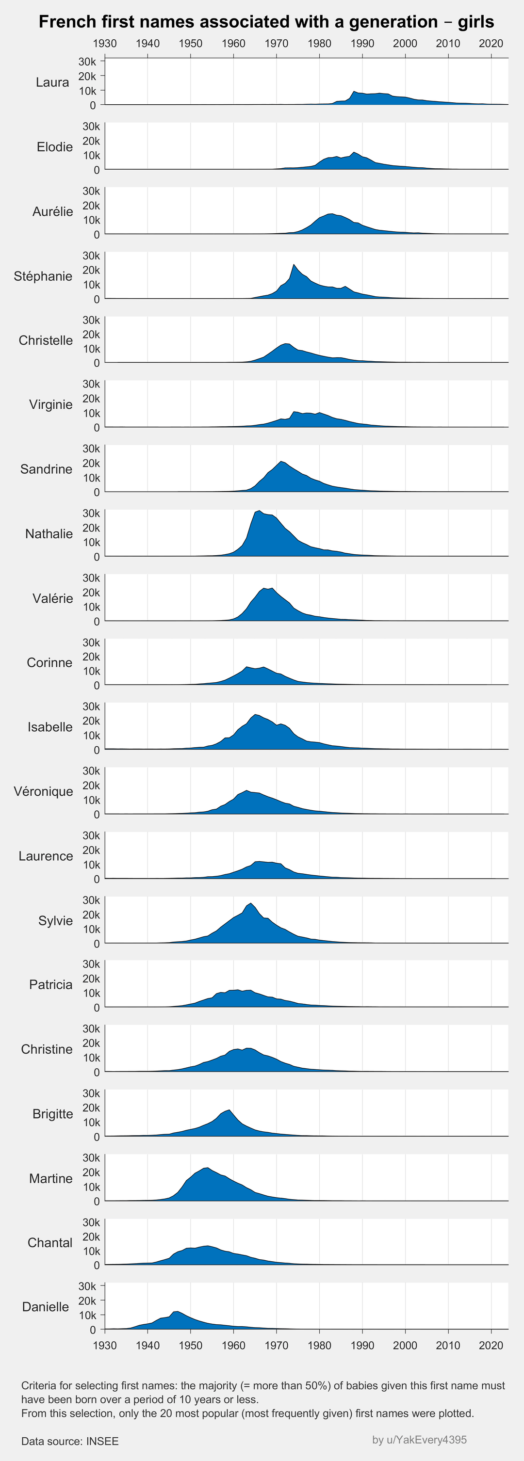[OC] French first names associated with a generation