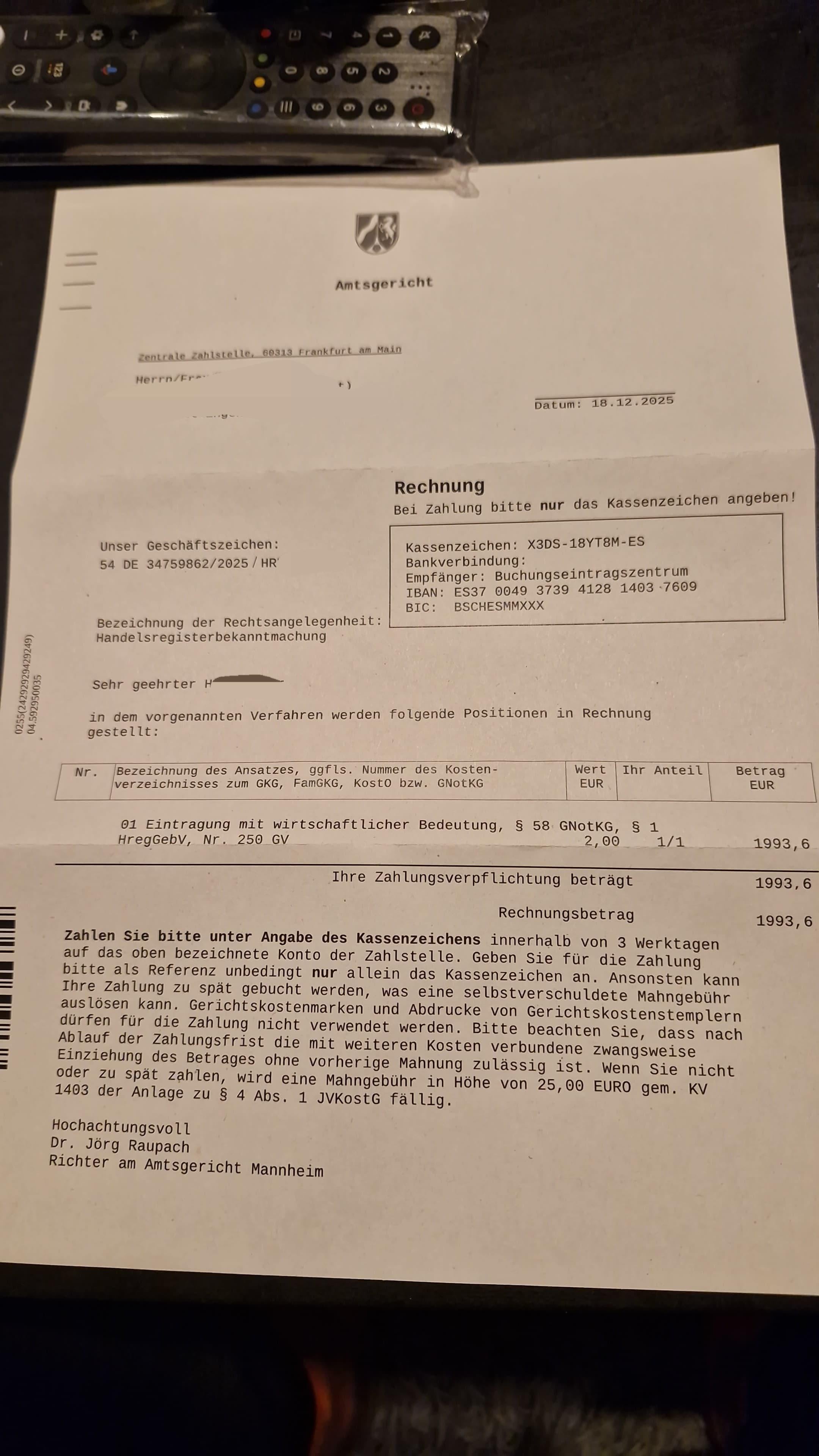 It’s such a well-known scam that my notary, who handled the UG registration for me, actually warned me that this letter would definitely arrive at least twice. And then even when the registration authority sends you the real letter, they include an extra note saying that you will definitely receive a fraudulent letter, so please pay attention to the IBAN and make sure it’s not non-German. Basically, everyone is aware of this type of scam, but it seems like no one is really doing anything about it other than warning new company founders not to respond to it.
