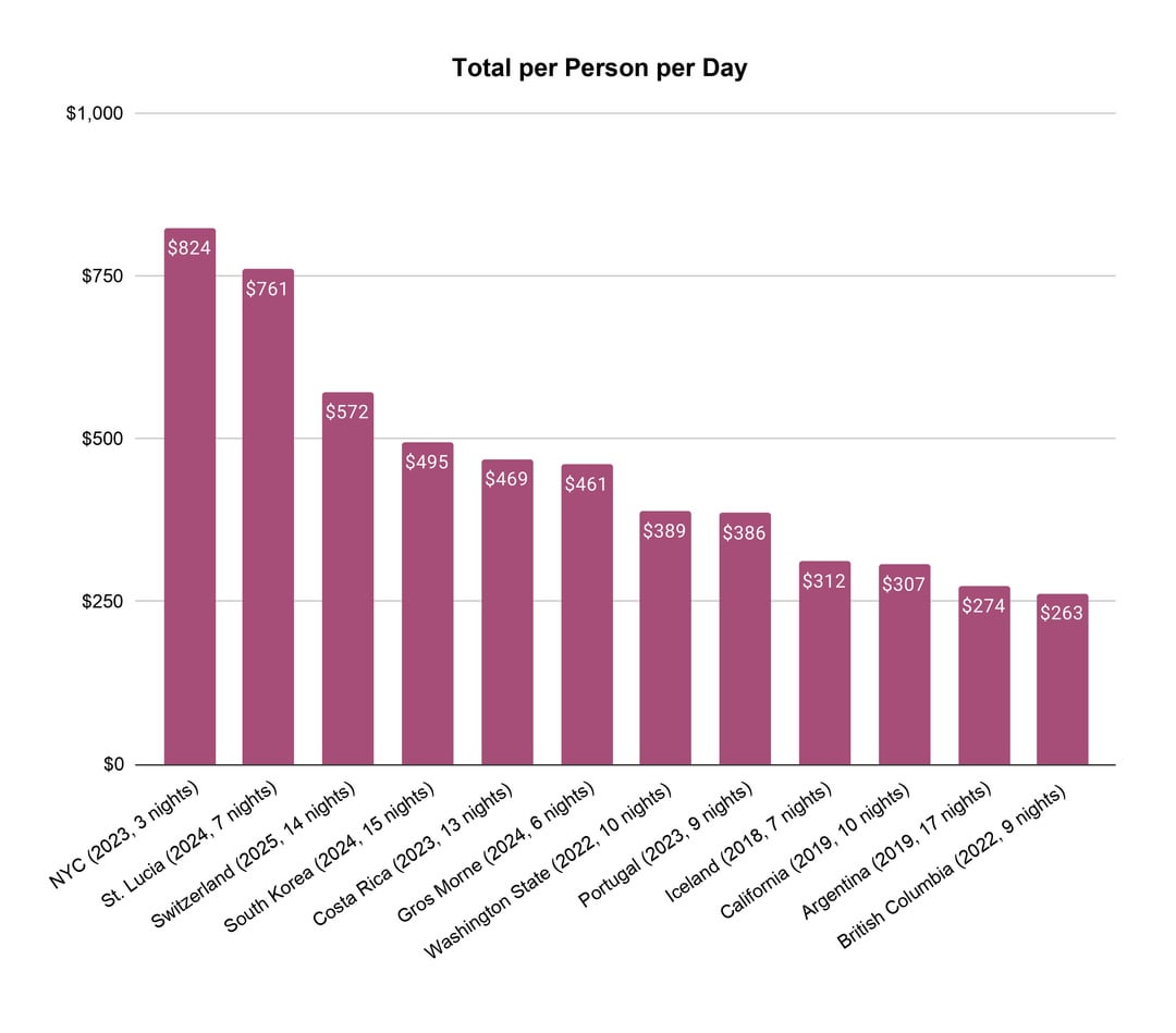 - I've excluded any shopping we did on each trip from the total and per person per day figures