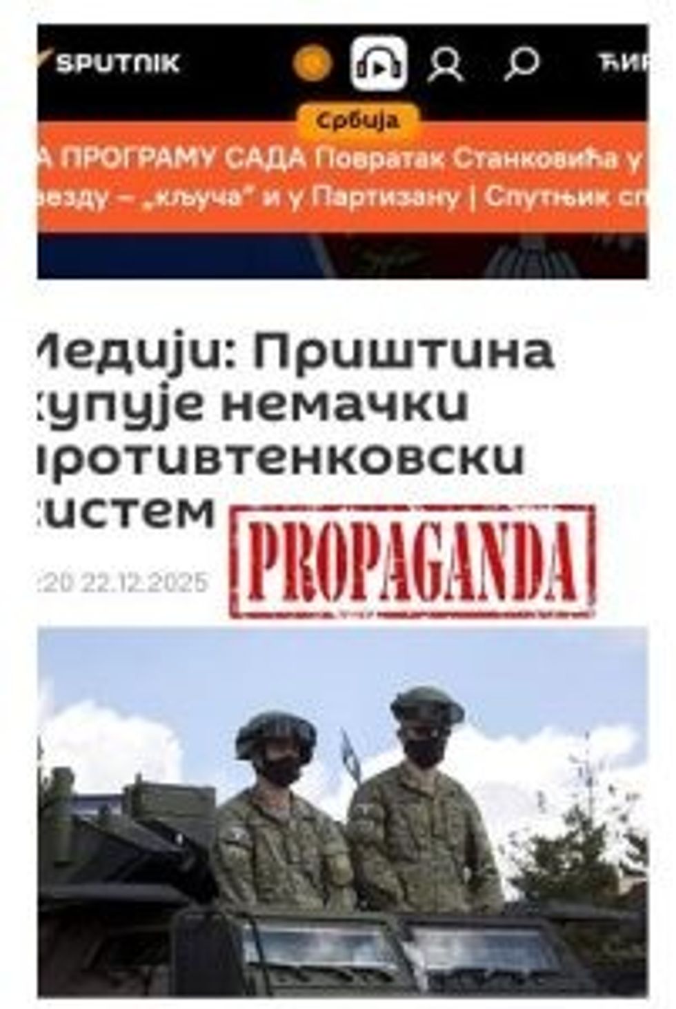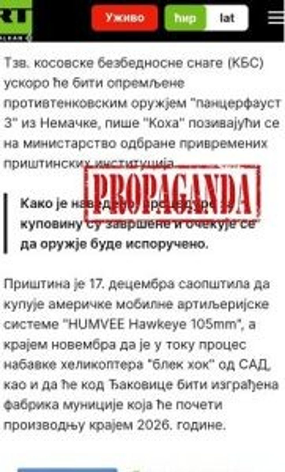 Russian media in Serbia, such as Sputnik Serbia and RT Balkan, have also reported on the same propaganda line regarding the equipping of the Kosovo Security Force with the German anti-tank system.