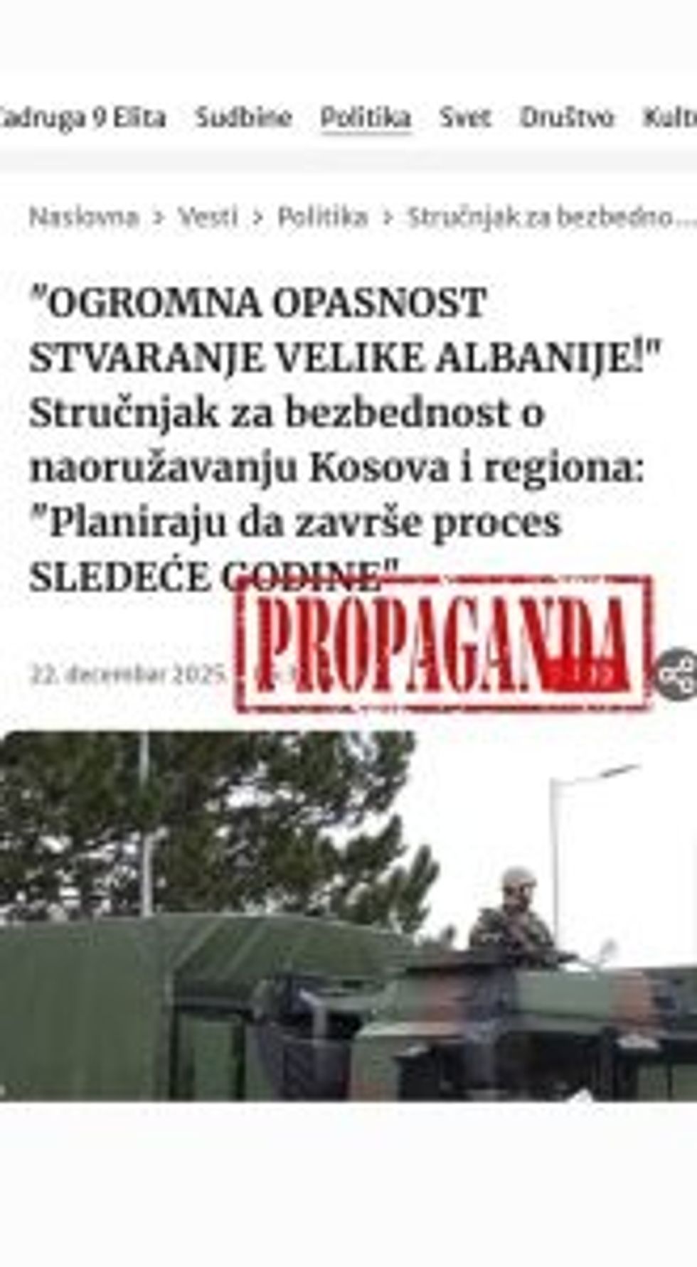 Meanwhile, media outlets like Blic and Telegraf talk about “great danger” and “creation of Greater Albania,” even though Serbia itself has been massively arming itself with Russia and China for years, as well as deploying military forces near its borders.