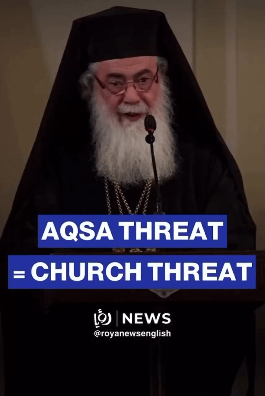 Patriarch Theophilos III of Jerusalem: “Any threat to Muslim holy places is a threat to our churches and Christian holy places… The existential threat to the Christian presence is real and deepening… Christian Zionism is a misuse of the holy scriptures for political purposes.”