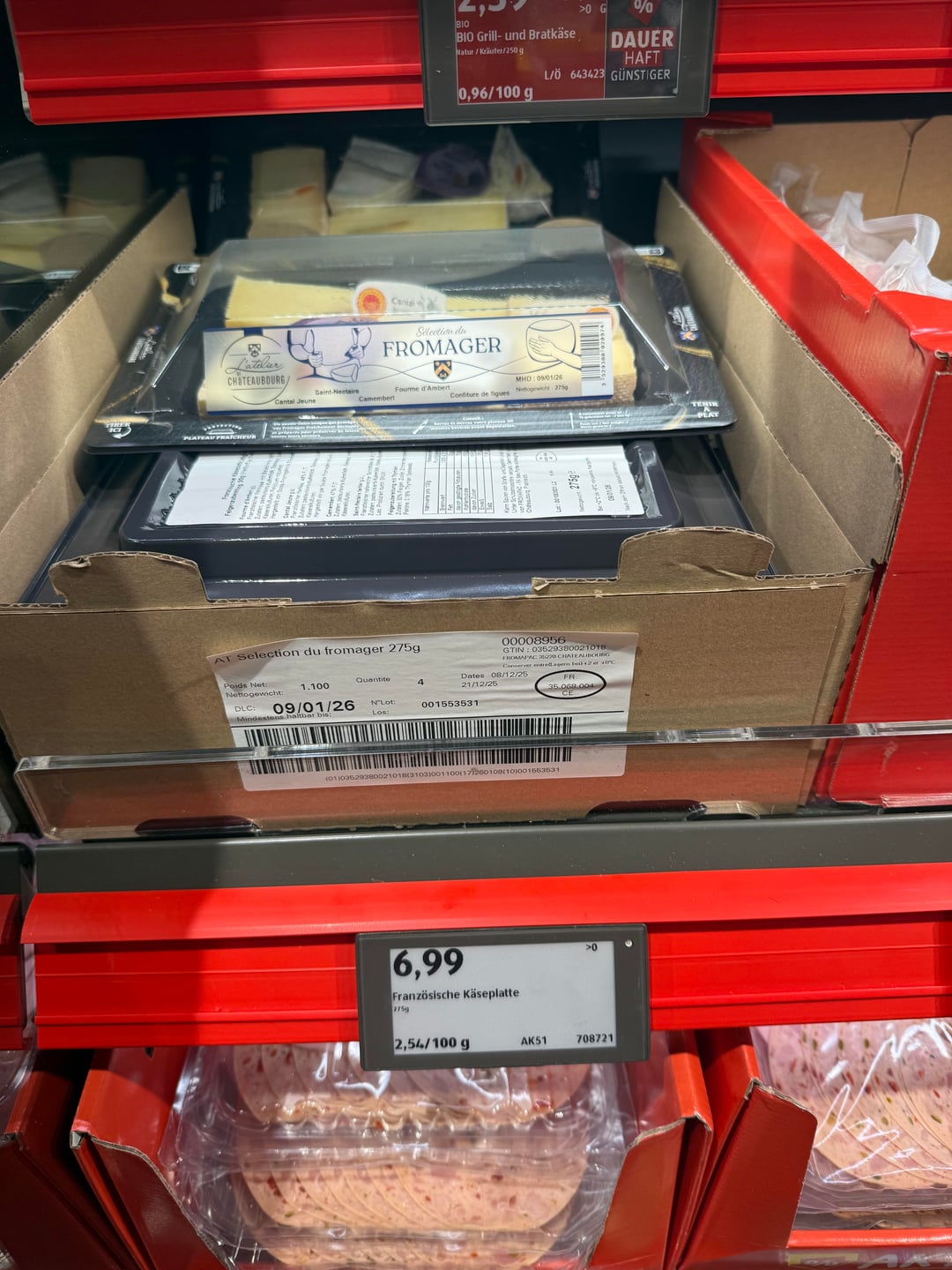 Then today, on December 24th, I was briefly at Hofer’s. I saw the same cheese plate there but this time it was half price🧐