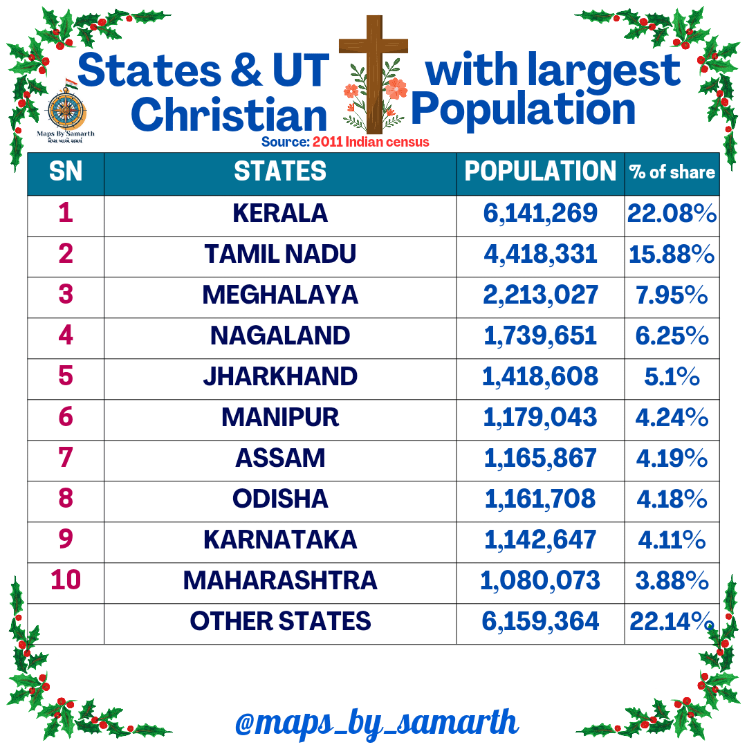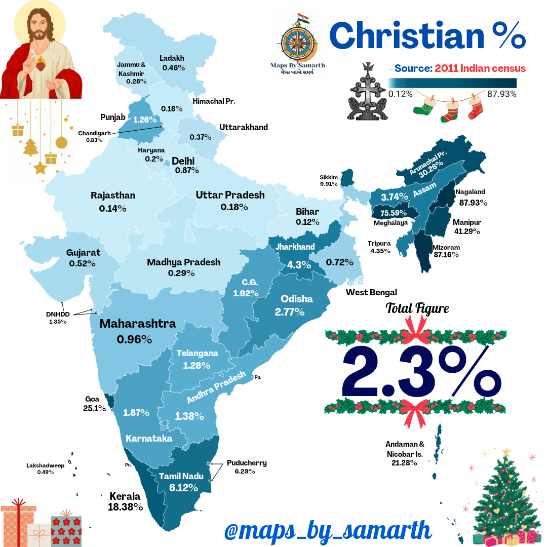 Alright I’m going to ask what the distribution of Orthodox is. Oriental or Eastern Orthodox are two different branches. I know the St Thomas Christians or Nasrani have been there longer than most Euro nations had Christians so most of those will be OOs.