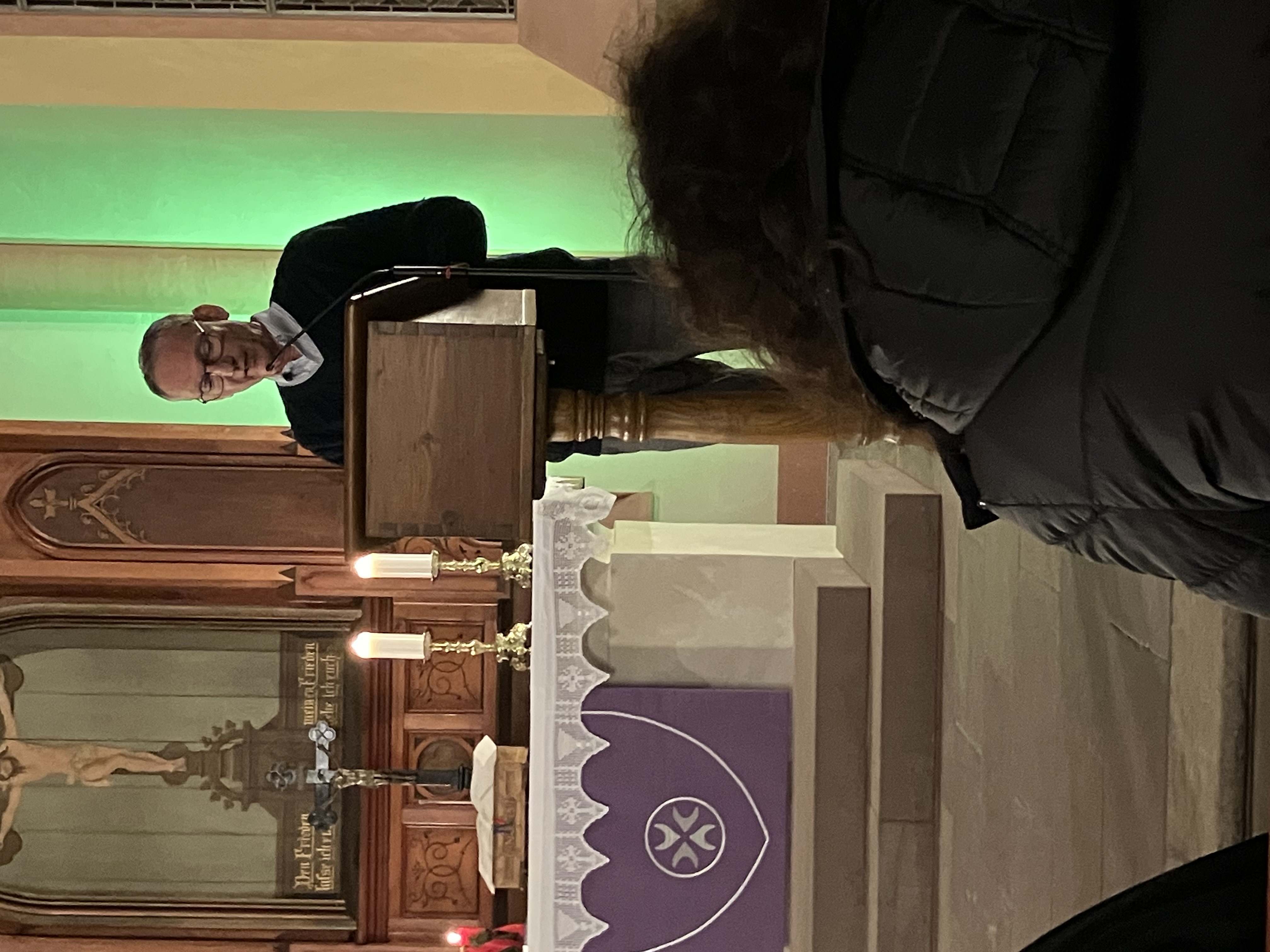 As we entered the church we were greeted by the pastor and introduced ourselves. He remarked: “Oh, you are native speakers! Would you be willing to read one of the lessons?” Randy immediately said, “yes” and we were led to the front of the church. I was struck with how different this church looked from others in northern Germany. It has more wood and brick and less stone, and seemed to have come from England itself. The atmosphere was lovely and serene.