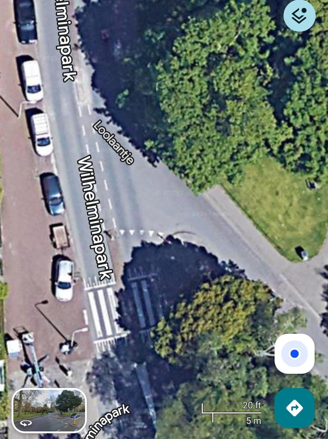 Hier is ervoor gekozen om de doorgaande weg niet de weg van het Wilhelminapark te laten zijn maar van het Loolaantje naar de rijbaan van het Wilhelminapark over te laten gaan als voorrangsweg.