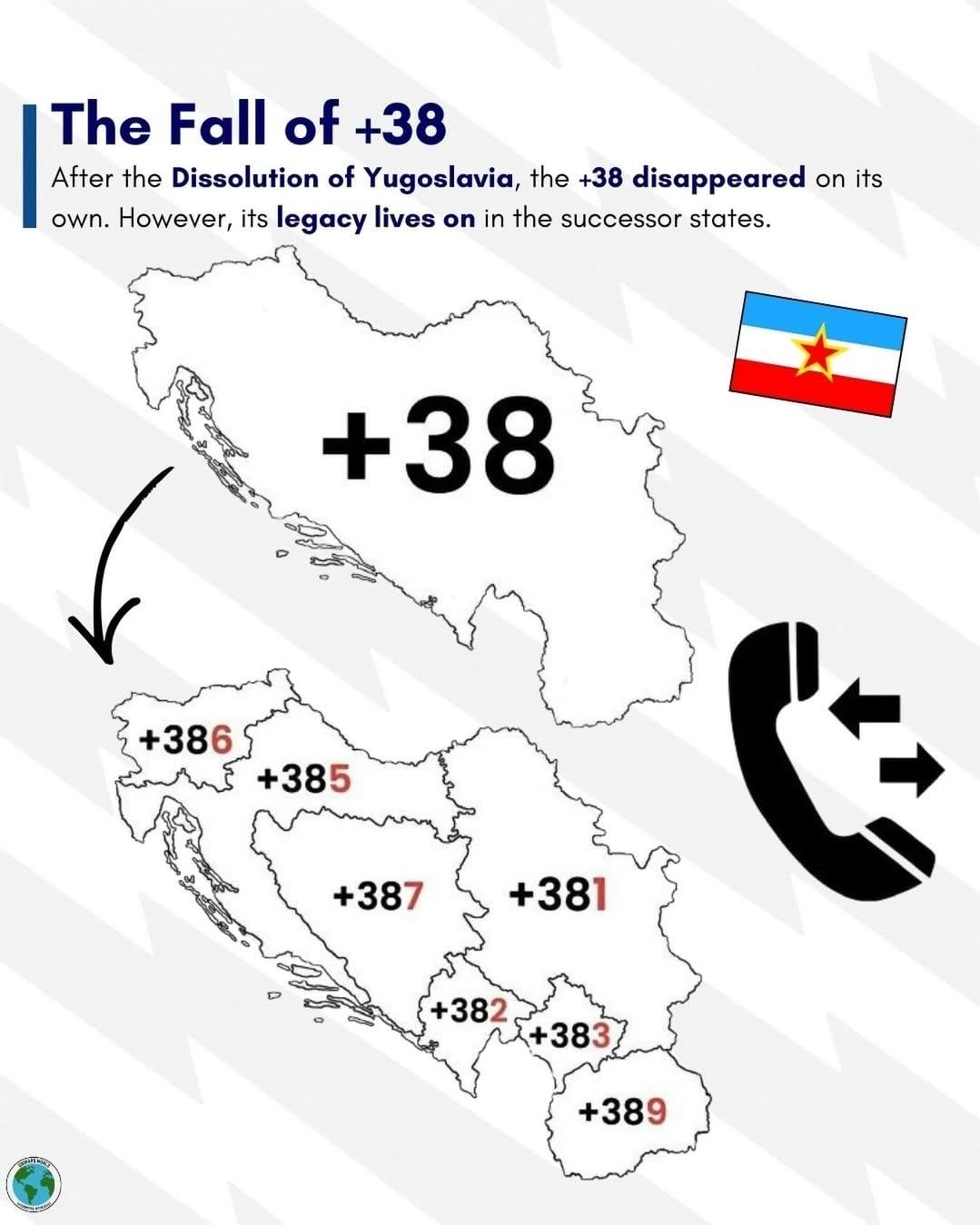 It was neatly following the area codes of each republic, but when Montenegro split away in 2006, they messed it up and took 382 instead of 388. Later, Kosovo took 383, which again matched their area codes, but if Vojvodina is ever independent, they will be stuck with 388 despite all their area codes beginning with 2.