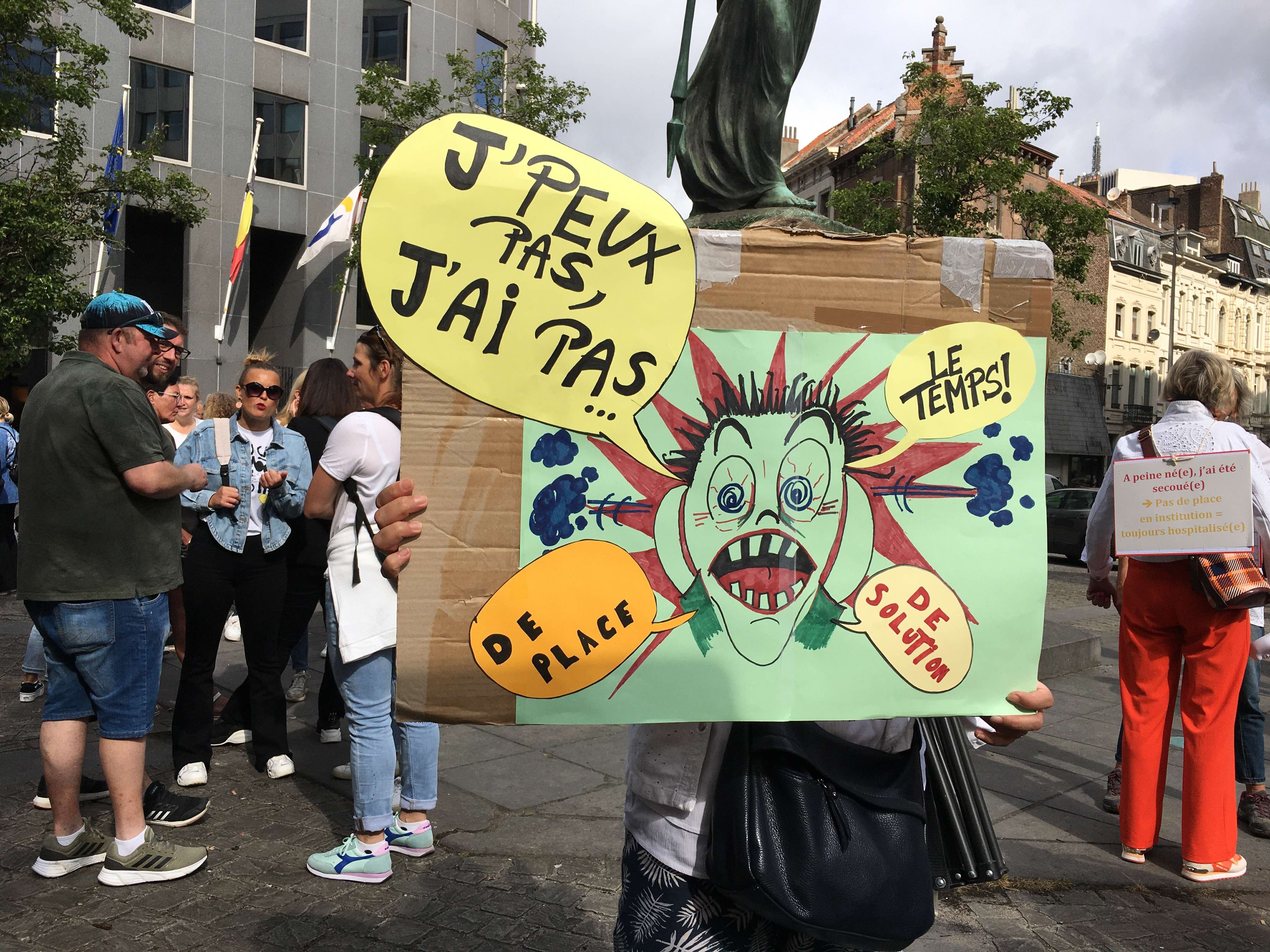 The picture shows a protest by Youth Assistance Services (SAJ) and Youth Protection Services (SPJ) in Brussels on Wednesday, 12 July 2023. The SAJ and the SPJ are responsible for caring for all at-risk and/or disadvantaged minors, including those with mental health issues and disabilities. © BELGA PHOTO MORGANE BERGER