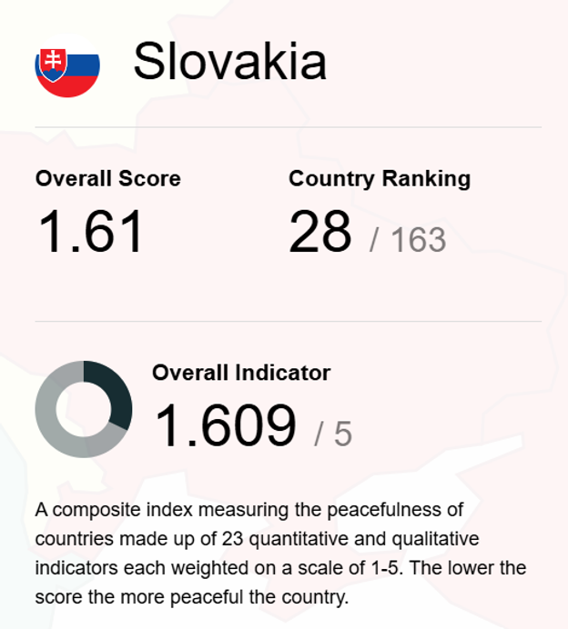 Slovakia was placed 28th overall, ranking in the middle among European countries. Analysts cite political instability and higher levels of violent crime compared with top-performing states as the main factors affecting its score. However, its location in a largely stable region remains a significant advantage. “The index places Slovakia 19th out of 33 European countries. That is not outstanding, but we benefit from being in a safe region, with the exception of Ukraine,” Královič noted.