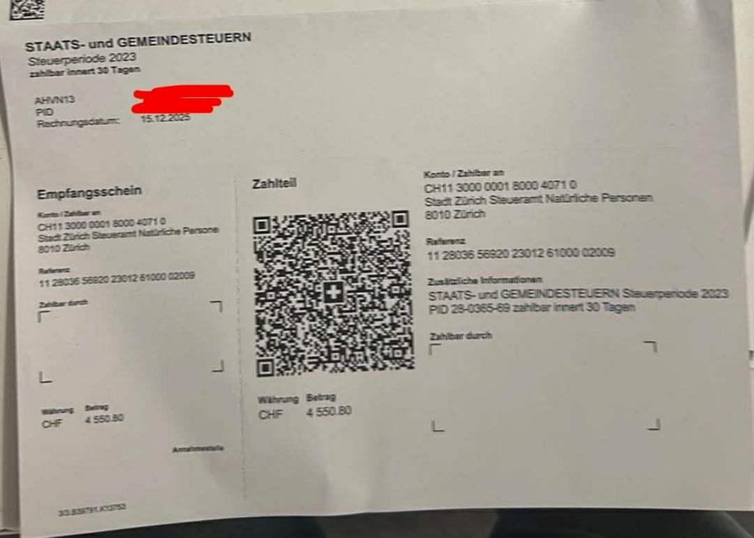 I recently received a letter asking me to pay CHF 4,500 in taxes for the year 2023, which really shocked me. The confusing part is that: