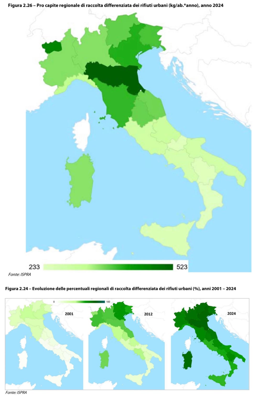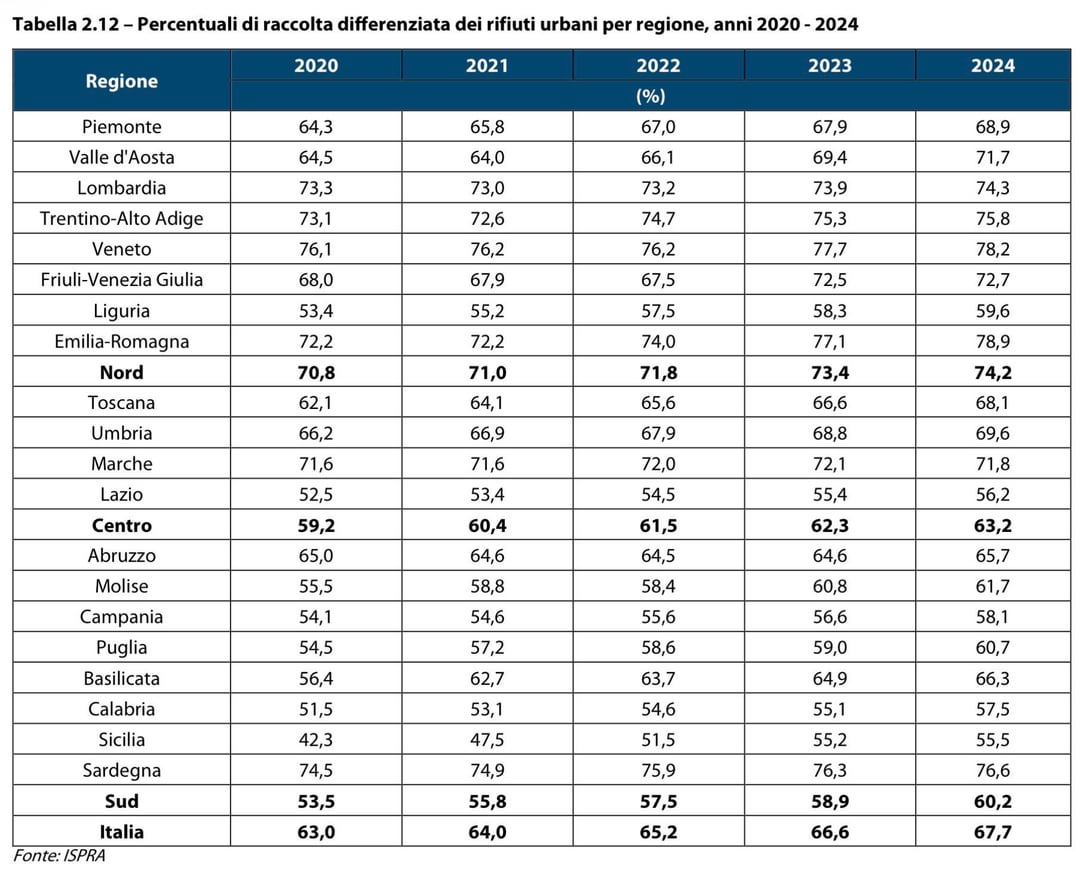 P.s. dai colori non si capisce, ma la Sardegna è arrivata all’80% di differenziata nel 2024??