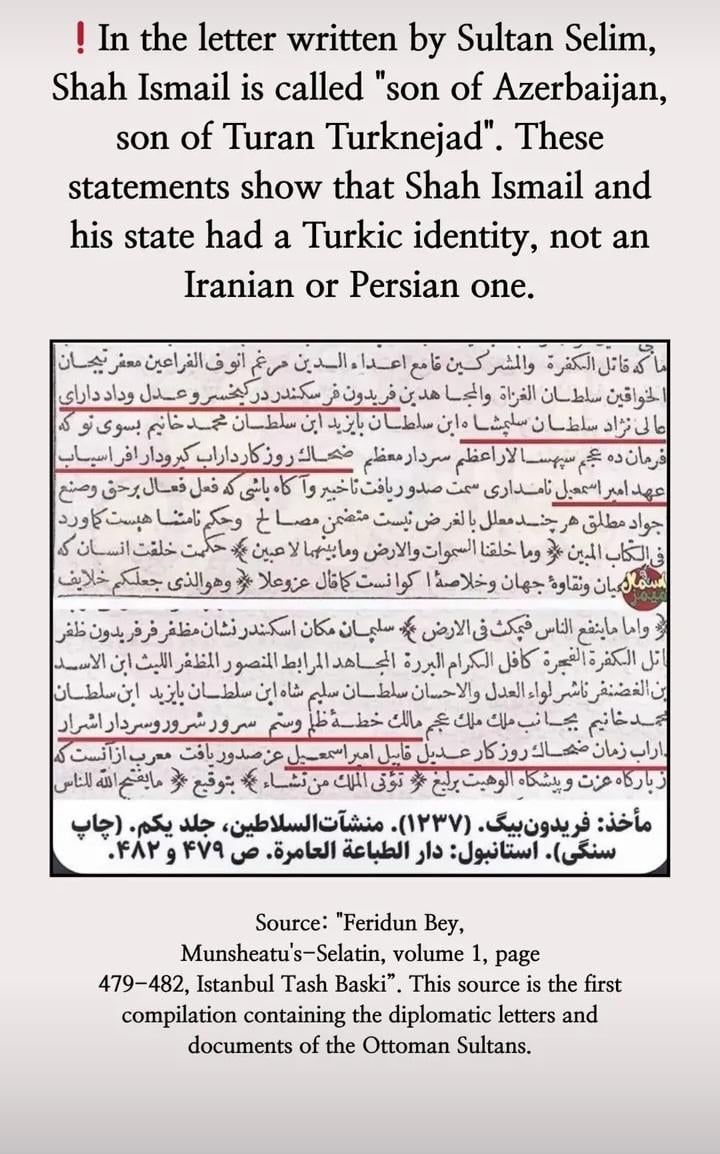 instead it calls the shah ismail the evil itself and describes him as all the evil kings that have ruled Iran in the past (calling him the Zahhak of the era, an evil lord from old persian myths, also afrasiyab, another evil king who conquered iran from the persian myth’s, mainly in Shahnameh) and describes Selim as greatest of the kings and from the race Suleiman Shah and bayezid all the way to race of Alexander