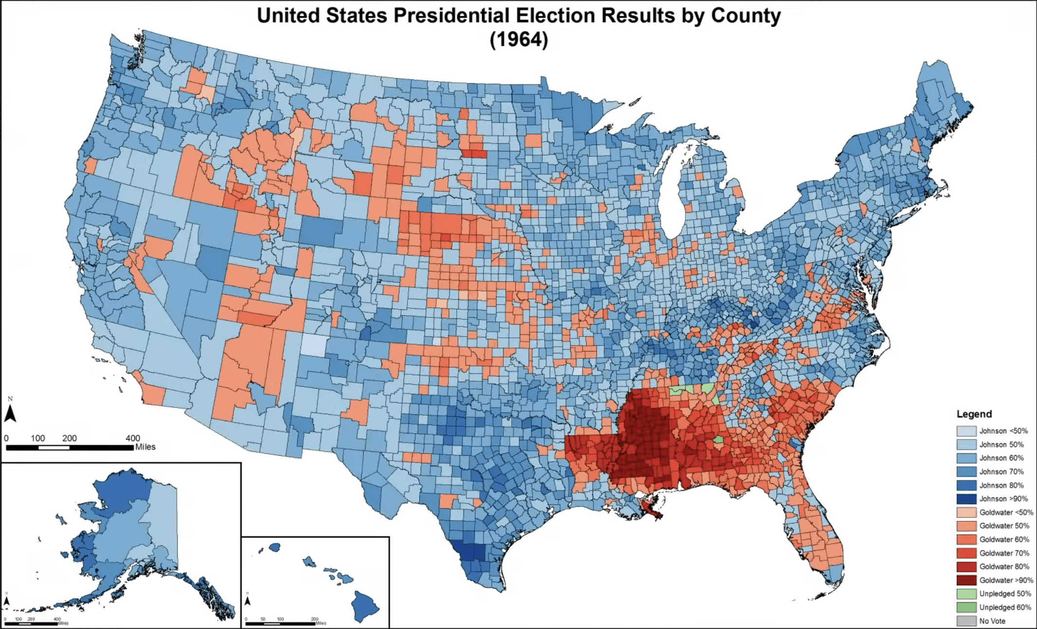 The Arizona map is interesting. Goldwater didn’t exactly bowl over his home state, with 50.45% of the vote.