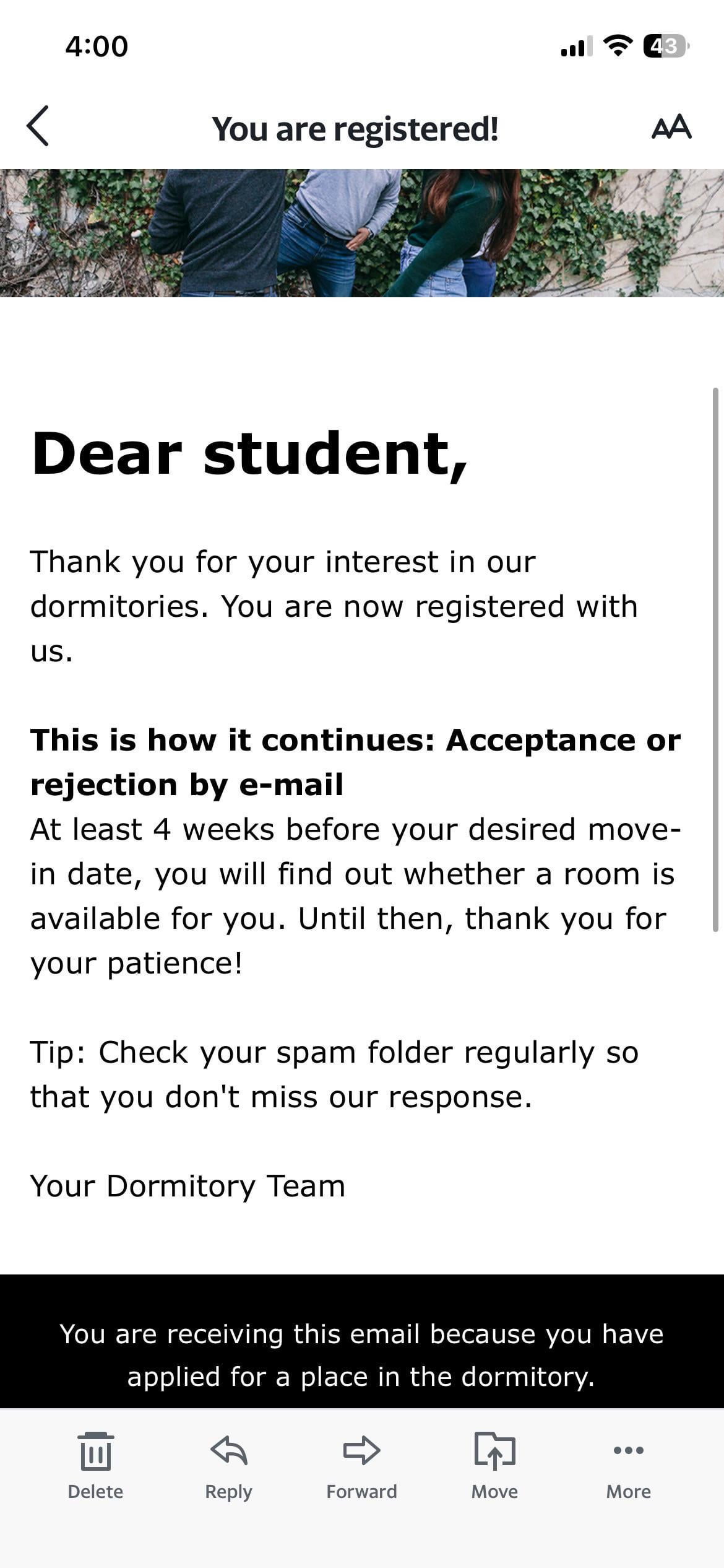 3. This email is unlikely to count as a proof of accommodation as it’s only a waiting list and you’re not guaranteed to get it.