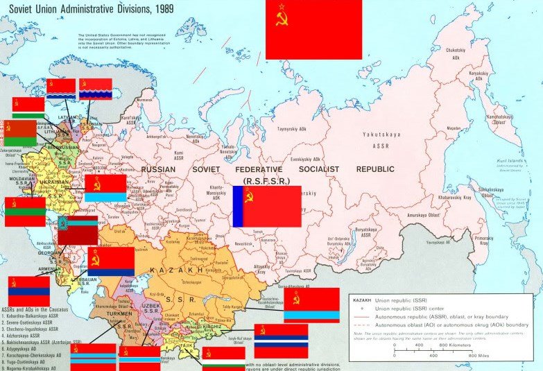 Map of the Soviet Union in 1989, showing its 15 constituent "republics" shortly before the collapse of the USSR and the restoration of independence by occupied nations in Eastern Europe and the Baltics.Map of the Soviet Union in 1989, showing its 15 constituent “republics” shortly before the collapse of the USSR and the restoration of independence by occupied nations in Eastern Europe and the Baltics.