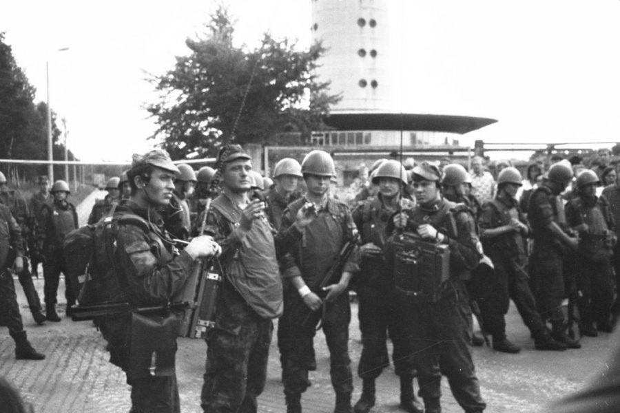 Soviet soldiers surrounding the Tallinn TV Tower on 20 August 1991. Photo by U. Ojaste.Soviet soldiers surround the Tallinn TV Tower on 20 August 1991. That evening, Estonia proclaimed the restoration of its independence. Photo: U. Ojaste.