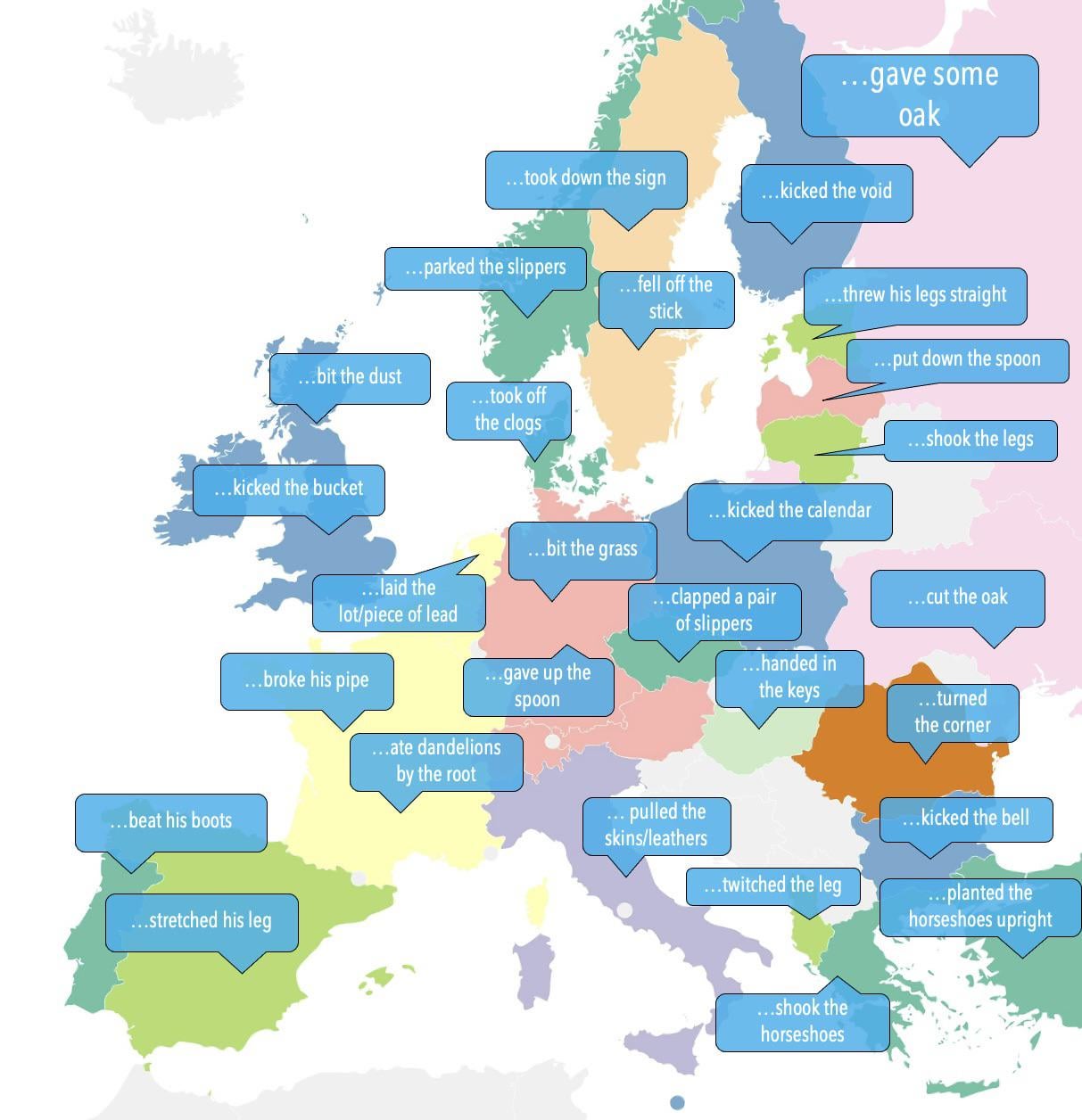 to move from time to eternity, to move to more blissful hunting grounds, to throw their crank, to change diocese, to join the air force, to join the straight-legged association, to throw a spoon in the corner etc.