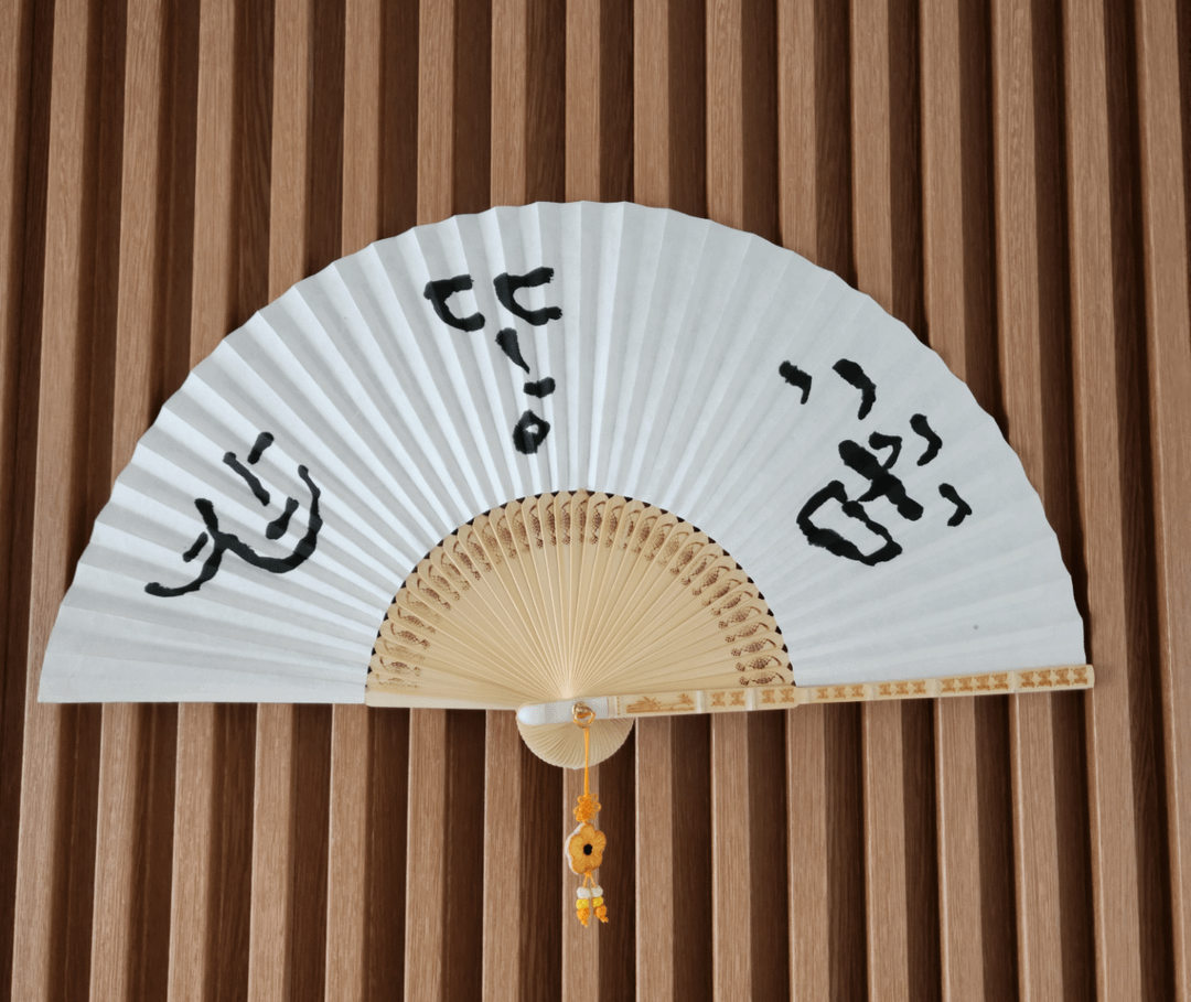 I got this two fans from a Korean acquaintance. When I first looked at them I spotted right away the misspelling in the "대한민êµ". The other fan allegedly has three faces? In my opinion they look like they say "ë°¥ 똥 꿈" but the thing is, doesn't 똥 mean "s***"?
