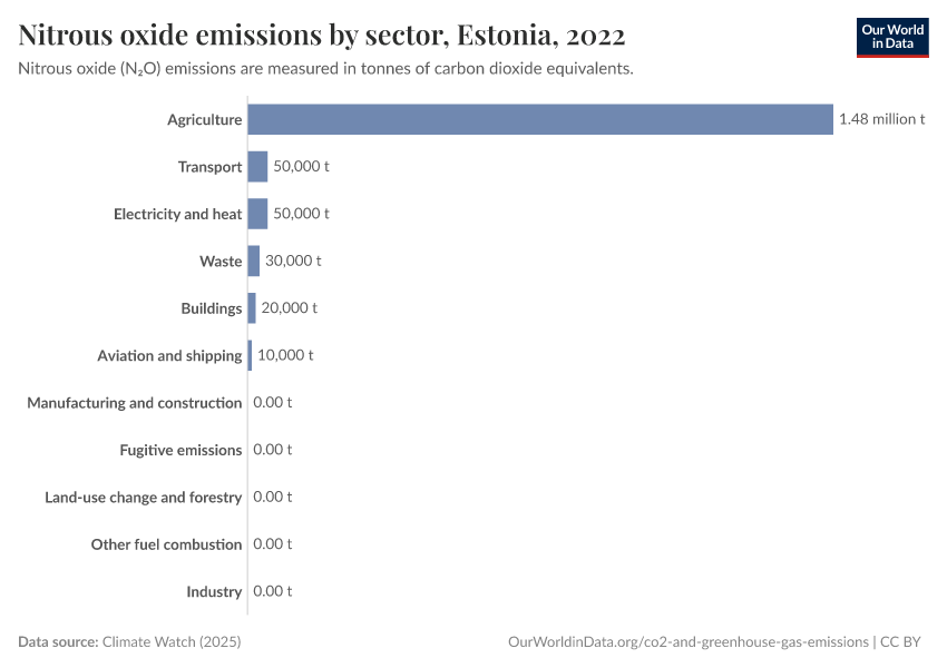 This first interactive chart here shows per capita emissions of nitrous oxide each year. This is measured in ‘carbon dioxide equivalents’.